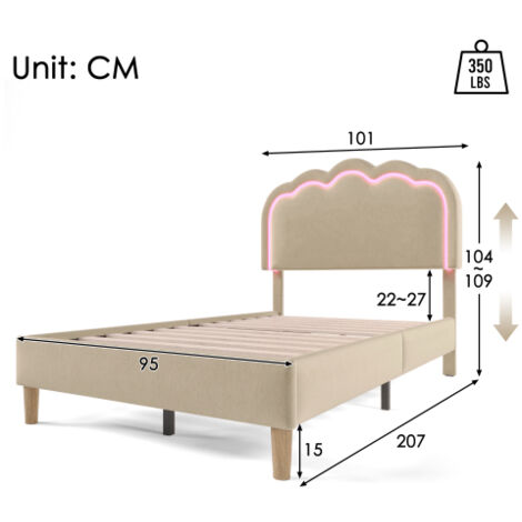 Wow, was für ein Traumbett für kleine Prinzessinnen! Dieses LIVLUX Bett in süßem Rosa mit Kronen-Design wird jedes Mädchenherz höher schlagen lassen. Das besondere Highlight: Das wolkenförmige Kopfteil hat farbwechselnde LED-Lichter, die du per Fernbedienung oder Handy steuern kannst - perfekt für gemütliche Leseabende! Aus robustem MDF und Kunstleder gebaut, hält das Bett bis zu 120kg aus. Der Metallrahmen und Lattenrost sorgen für Stabilität und gute Belüftung der Matratze. Mit 203,5x90,5/140,5x135,5cm ist es genau richtig für Kinder- und Jugendzimmer. Die Montage ist super einfach - in etwa 30 Minuten steht das Bett und bringt jede Menge Magie ins Zimmer! Matratze und Federkern musst du separat besorgen, aber das ist ja kein Problem, oder?