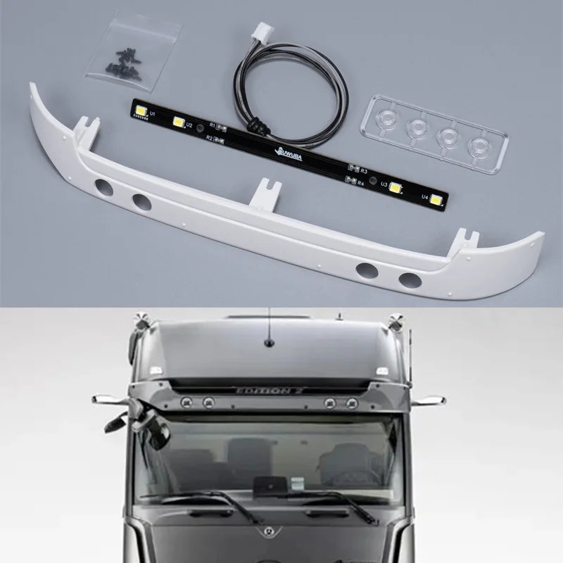 Mach deinen RC LKW noch realistischer mit dieser coolen LED-Sonnenblende! Perfekt für 1/14 Modelle wie den R620, R470 oder S730 Traktor LKW. Die Sonnenblende aus Kunststoff ist weiß und hat integrierte LED-Lichter in Gelb/Weiß. Mit einer Größe von 172x25x23mm passt sie perfekt zu deinem Modell. Die maximale Spannung beträgt 3V - also ideal für deine RC-Fahrzeuge. Einfach anbauen und dein LKW sieht aus wie ein echtes Großfahrzeug! Die LEDs sorgen für zusätzlichen Realismus und machen dein Modell zum absoluten Hingucker. Wichtig: Nur für Spielzeugmodelle geeignet, nicht für echte Fahrzeuge! Perfekt für alle Modellbau-Fans, die ihre Sammlung erweitern oder ihr aktuelles Projekt aufwerten wollen. Einfach bestellen, montieren und staunen, wie professionell dein RC-LKW jetzt aussieht! Wenn du unsicher bist, ob dieses Teil zu deinem Modell passt, frag einfach vorher nach - wir helfen gerne!