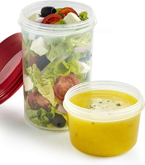 Perfektes Frühstück für unterwegs! Dieser LOCK & LOCK TWO-WAY Becher hat zwei separate Fächer - oben trockene Zutaten wie Müsli oder Nüsse, unten Joghurt oder Quark. So bleibt alles knusprig frisch! Mit 360 ml und 310 ml Fassungsvermögen ist er ideal für Büro, Schule oder Uni. Aus BPA-freiem Kunststoff, absolut lebensmittelecht. Der Schraubdeckel ist 100% auslaufsicher - kein Kleckern in der Tasche! Mikrowellengeeignet und spülmaschinenfest, also super praktisch. Maße: 105x99x140 mm, passt in jede Tasche. Auch perfekt für Salat mit Dressing, Obst mit Dip oder Nüsse mit Trockenfrüchten. Das transparente Design mit rotem Deckel sieht dabei noch richtig stylisch aus. Ob für die Arbeit, Ausflug oder Picknick - mit dieser Dose hast du dein Lieblingsessen immer frisch dabei. Umweltfreundliche Materialien und cleveres Design - so muss praktisches Essensgeschirr sein!