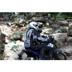 Das 750D Tactel Material ist super weich und trotzdem robust - fühlt sich an wie eine zweite Haut! Dank der 2-Lagen Laminat-Technologie mit HUMAX Membrane ist die Jacke 100% wasser- und winddicht, aber trotzdem atmungsaktiv. Das bedeutet: Bei Regen saugt sich das Material nicht voll, sondern lässt das Wasser einfach abperlen. An den wichtigen Stellen sind SAS-TEC Protektoren an Schultern, Ellenbogen und Rücken - alle CE-zertifiziert und mit Schutzlevel 2. Die Ellbogenprotektoren kannst du sogar in der Höhe verstellen für perfekten Sitz. Die herausnehmbare Steppjacke mit Stretcheinsätzen kannst du auch alleine tragen. Egal ob Stadtverkehr oder längere Tour - mit dieser Jacke bist du bestens geschützt und siehrst dabei noch richtig gut aus!