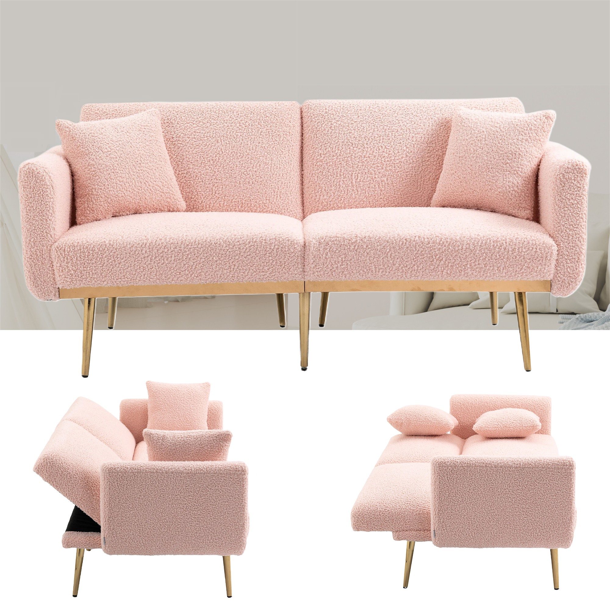 Perfekte Lösung für kleine Wohnungen! Dieses stylische 2-Sitzer Sofa verwandelt sich im Handumdrehen in ein bequemes Gästebett. Ausklappen, fertig! Mit praktischem USB-C Anschluss, Getränkehalter und Seitentaschen für Fernbedienung & Co. Aus hochwertigem Chenille-Stoff und Massivholzrahmen - sieht gut aus und hält ewig. Einfache Montage, kommt in 2 Paketen. Ideal für Gästezimmer, Wohnzimmer oder Studentenbuden - wenn mal wieder Besuch übernachtet!