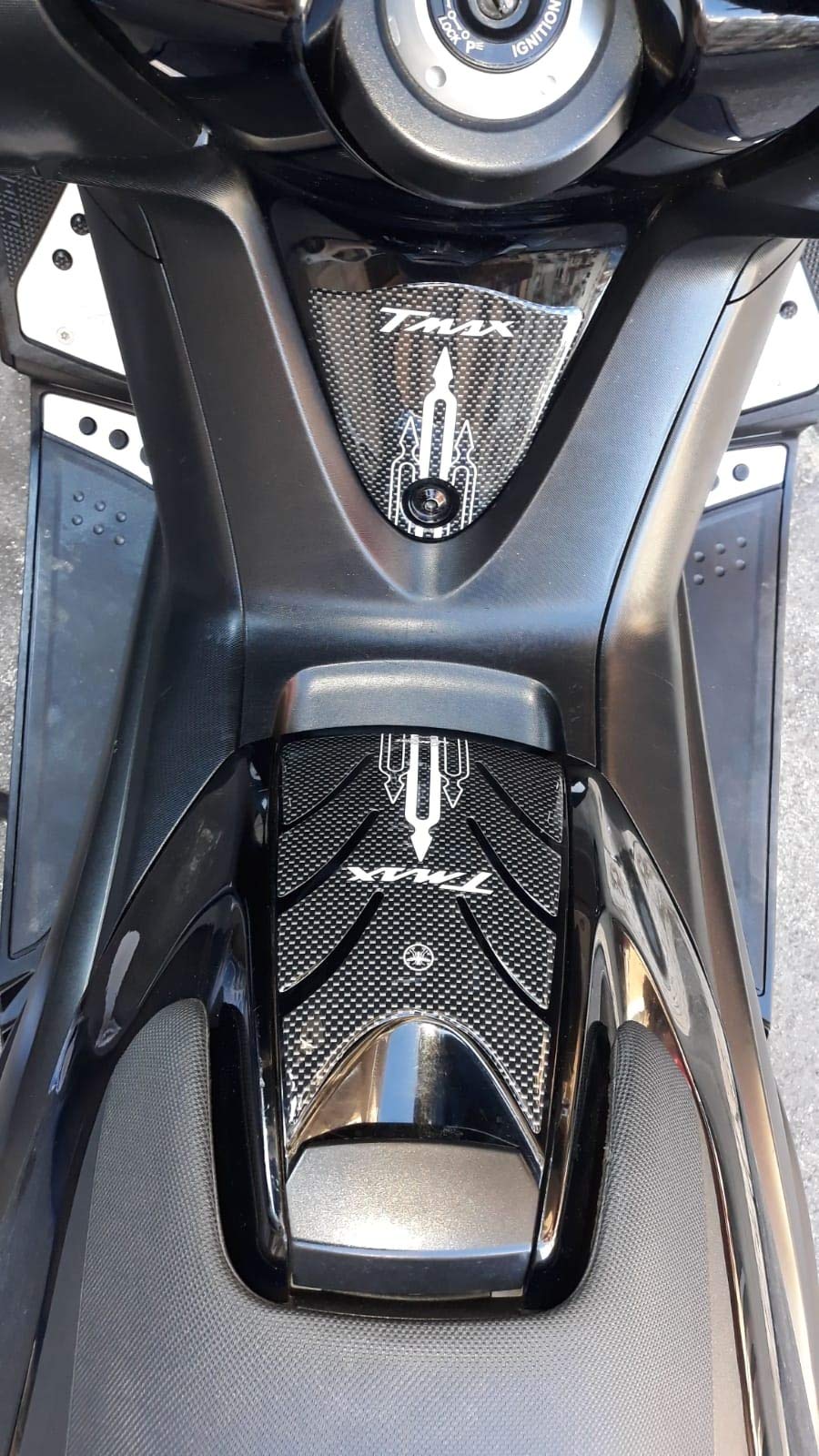 Schütze deine Yamaha TMAX 530 vor Kratzern und Stößen! Diese hochwertigen 3D Carbon Aufkleber von labelbike werden in Italien handgefertigt und mit Harz beschichtet. Wasserdicht, kratzfest und temperaturbeständig bis -20°C. Einfach auf die gereinigte Oberfläche kleben - fertig! Perfekte Passform für TMAX 530 Modelle 2012-2016. Sieht nicht nur gut aus, sondern schützt auch deine Lackierung. Made in Italy - Qualität, die man sieht!