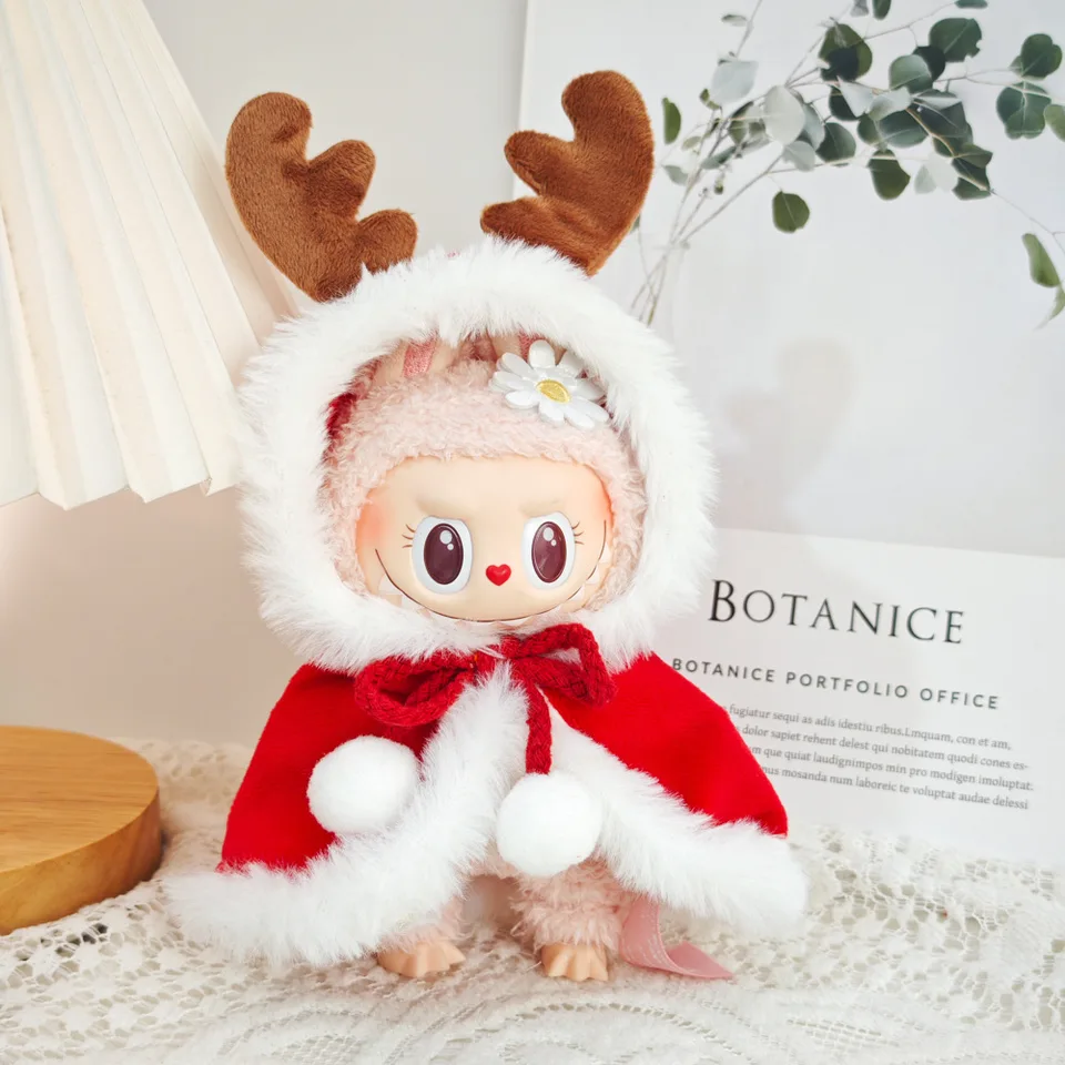 • Labubu Puppenkleidung Weihnachts-Rentier Outfit - Süßes Dress & Hat Set
