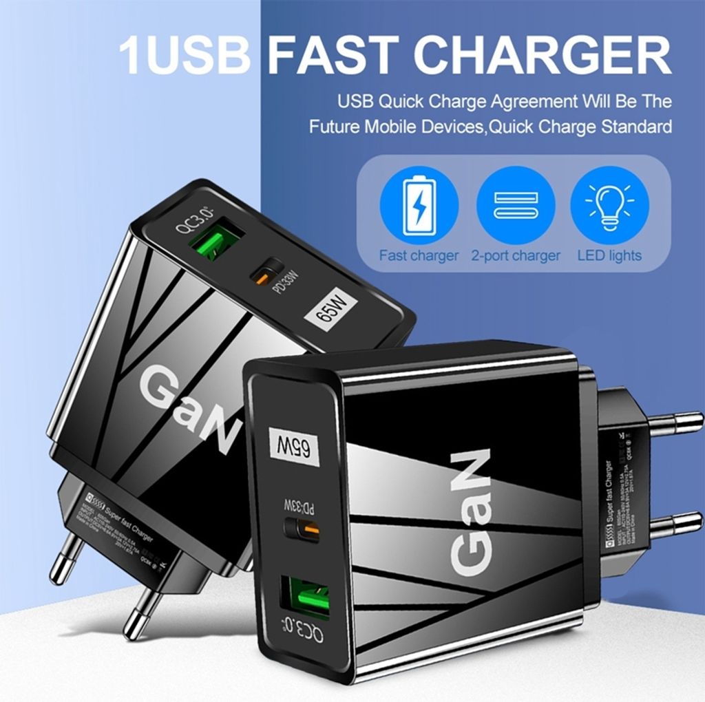 • DEESOOCO 65W GaN USB-C Ladegerät - 3 Port Schnellladung Für MacBook & Smartphones
