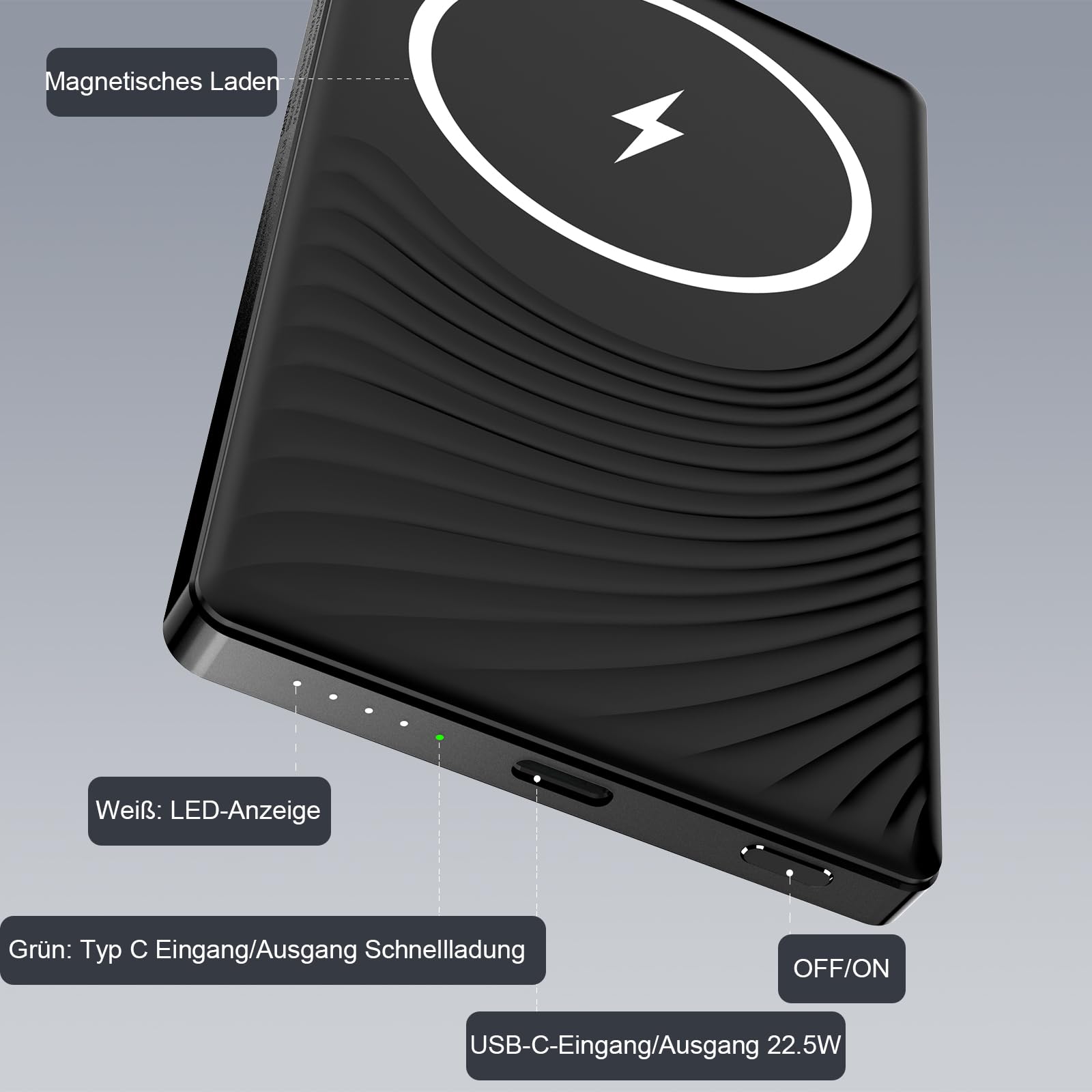 Hey, kennst du das? Dein iPhone-Akku macht schlapp und du hast kein Kabel dabei? Mit dieser Pakinui MagSafe Powerbank gehört das der Vergangenheit an! Die 10000mAh Powerbank hält dein iPhone 12/13/14/15/16 den ganzen Tag am Leben. Das coole an der Sache: Sie hält magnetisch an deinem iPhone - einfach dranklacken und laden! Mit 15W Wireless Charging und 20W USB-C lädt sie dein iPhone in nur 30 Minuten auf 55% auf. Das LED-Display zeigt dir immer genau, wie viel Saft noch drin ist. Mit nur 182 Gramm und 10,5 x 6,5 x 1,7 cm passt sie in jede Jackentasche und ist flugzeugtauglich. Perfekt für unterwegs - ob beim Shoppen, Wandern oder auf Reisen. Der ausklappbare Handyhalter ist genial für Video-Calls oder zum Serien schauen. Und keine Sorge: Mehrfach-Schutzsysteme sorgen für sicheres Laden. Einfach praktisch!