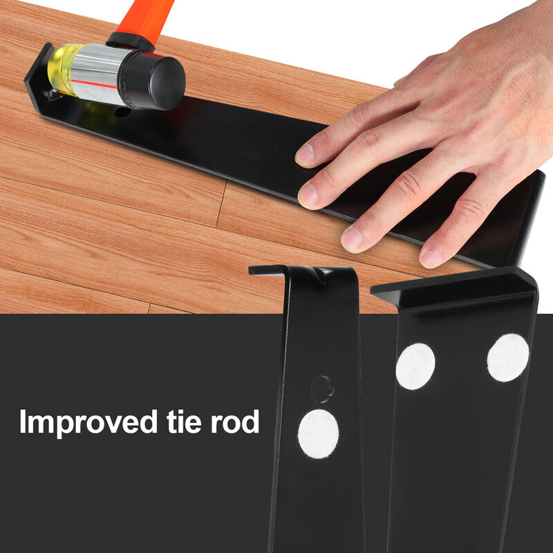 Der stabile Schlagklotz aus PP-Material schützt deine Hände und die Bodenkanten. Die dreieckigen Abstandhalter klemmen nicht ein und bleiben sicher stehen. Die Zugstange aus hochwertigem Stahl mit weicher Polsterung schont deinen Boden.