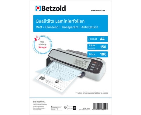 Hey, diese Laminierfolien sind genau das Richtige für alle, die Dokumente schützen wollen! 100 Stück im Pack, DIN A4 (216x303mm) und 75mic stark. Beidseitig glänzend - macht alles richtig schick! Mit abgerundeten Ecken und einseitig verschweißt - super einfach zu handhaben. Passen in jedes handelsübliche Laminiergerät, egal welche Marke. Ob wichtige Unterlagen, Fotos, Kinderzeichnungen oder Menükarten - damit sind sie vor Schmutz, Feuchtigkeit und Verschleiß geschützt. Einfach Dokument rein, durchs Laminiergerät schieben - und fertig ist die professionelle Versiegelung! Ein echter Vorrat für Büro, Schule oder zuhause - damit hast du lange was zu tun!