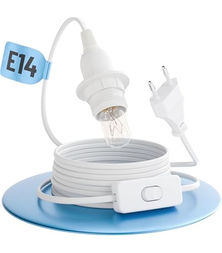 Perfekt für deine Salzsteinlampe oder andere DIY-Beleuchtungsprojekte! Diese JAYIOLA E14 Lampenfassung hat ein 180cm langes PVC-Kabel und einen praktischen Ein/Aus-Schalter. Einfach die gewünschte E14-Birne reinschrauben, Stecker in die Dose - und schon hast du individuelle Beleuchtung. Ideal für Wohnzimmer, Schlafzimmer, Bar, Café oder Flur. Die weiße Farbe passt zu jedem Einrichtungsstil. Super einfach zu installieren, keine Vorkenntnisse nötig. Aus langlebigem PVC-Material für jahrelange zuverlässige Nutzung. Mach dir deine persönliche Beleuchtungslösung - ob als Ersatz für kaputte Salzlampe-Fassungen oder für neue kreative Projekte!