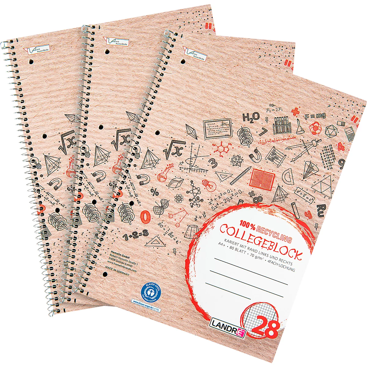 Perfekt für Schule, Studium oder Büro! Dieses 5er-Set Collegeblöcke von Landré hat alles, was man braucht: 3 karierte Blöcke (Lineatur 28) und 2 linierte Blöcke (Lineatur 27), jeder mit 80 Blatt feinem, holzfreiem 70g/m² Papier. Die Blöcke sind 4-fach gelocht und haben eine Spirale, sodass du die Seiten komplett umschlagen kannst - super praktisch zum Schreiben! Mit Rand links und rechts, ideal für Notizen und Korrekturen. Die steigende Spirale und der stabile Rückenkarton geben Halt. Ob für Mitschriften, Hausaufgaben oder Skizzen - mit diesen Blöcken bist du bestens ausgestattet. Einfach ein klassischer Begleiter für jeden Schreibtisch!
