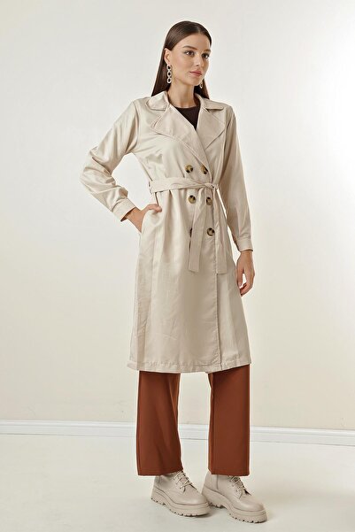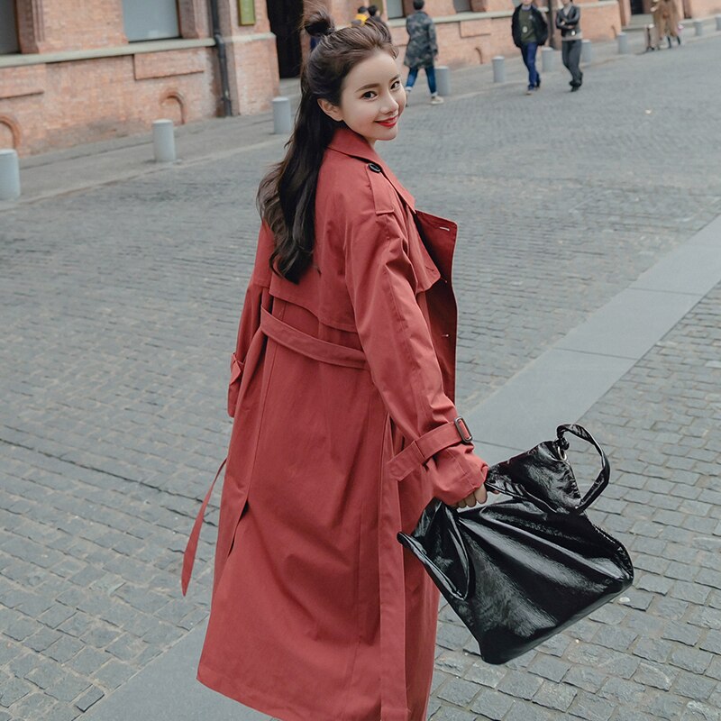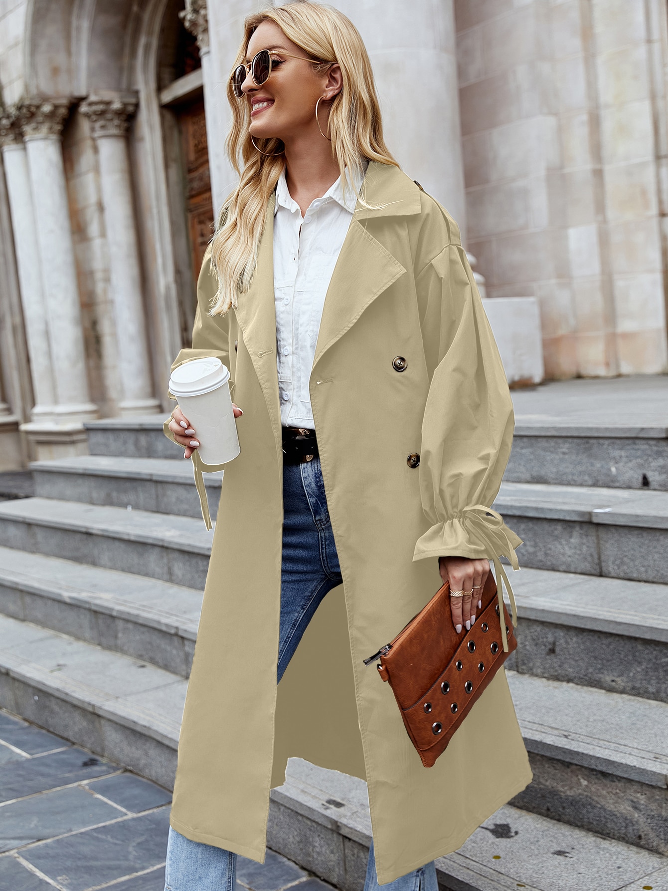 Damen Trenchcoat Einfarbig Lang - Eleganter Wintermantel Mit Umlegekragen