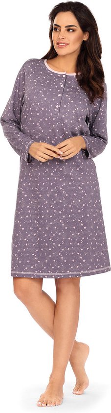 • Comtessa Damen Nachthemd Langarm - Baumwolle Knopfleiste Mit Sternchen-Muster