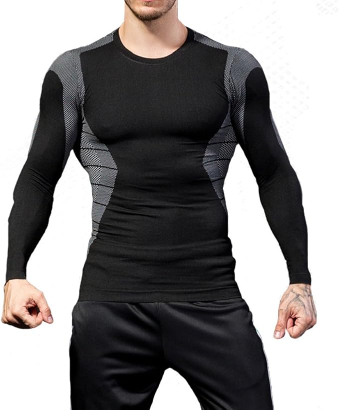 • Herren Kompressionsshirt Langarm - Sport Unterhemd Mit Feuchtigkeitstransport