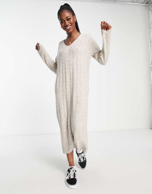 Damen Strickkleid Langarm - Zopfmuster Mit Rock | Übergroßes Pulloverkleid