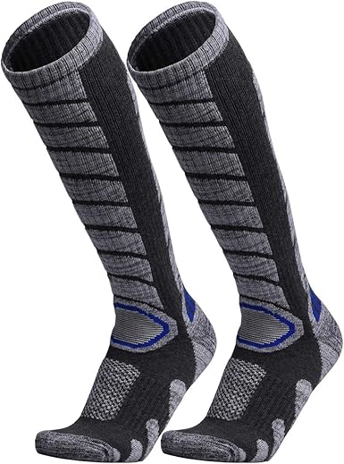 Warme Füße beim Skifahren garantiert! Diese WEIERYA Skisocken aus weicher Merinowolle mit Anti-Pilling-Acryl halten deine Füße auch bei eisigen Temperaturen kuschelig warm. Das hohe Waden-Design entlastet deine Beine und fördert die Durchblutung. Besonders praktisch: Die rutschfeste Stulpe verhindert, dass die Socken in den Stiefeln rutschen. Dicke Frottee-Polsterungen an Ferse und Zehen schützen vor Blasen. Perfekt für Skifahren, Snowboarden, Winterwandern und alle Outdoor-Aktivitäten. Atmungsaktiv und feuchtigkeitsregulierend - deine Füße bleiben immer trocken. Im 2er oder 3er Pack, ideal auch als Geschenk!