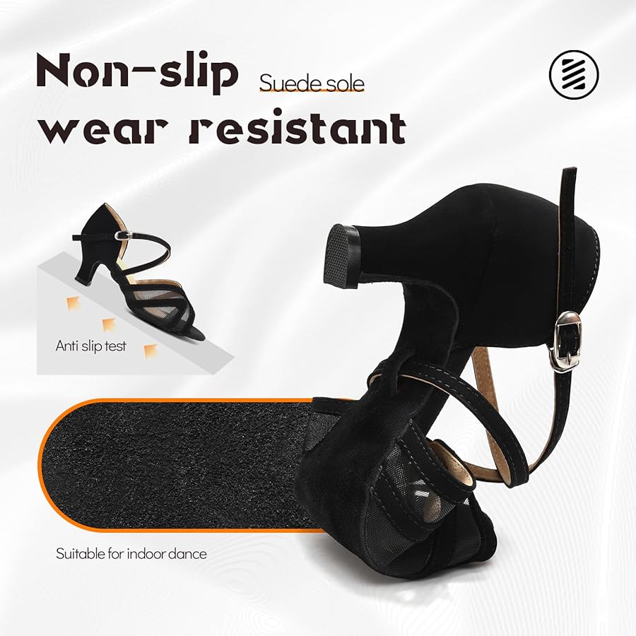 Bereit für die Tanzfläche? Diese eleganten Latein-Tanzschuhe von Uonpie machen jede Bewegung zum Erlebnis! Aus weichem Satin und Mesh gefertigt, sind sie nicht nur hübsch anzusehen, sondern auch super bequem und atmungsaktiv. Der 6 cm hohe Absatz gibt dir genug Höhe für elegante Drehungen, bleibt aber stabil und angenehm zu tragen - auch bei langen Tanzabenden. Die geschlossene Zehe und die verstellbare Kreuzschnalle sorgen für perfekten Halt. Die Wildledersohle ist leicht und rutschfest - ideal für Indoor-Tanzflächen. Ob Salsa, Tango, Cha-Cha oder Samba - diese Schuhe sind für jeden Tanzstil geeignet. Sie sehen aber auch bei Hochzeiten oder Partys einfach umwerfend aus! Wichtig: Vor dem Kauf unbedingt Fußlänge und -breite messen und unsere Größentabelle checken. Dann steht dem Tanzvergnügen nichts mehr im Weg!