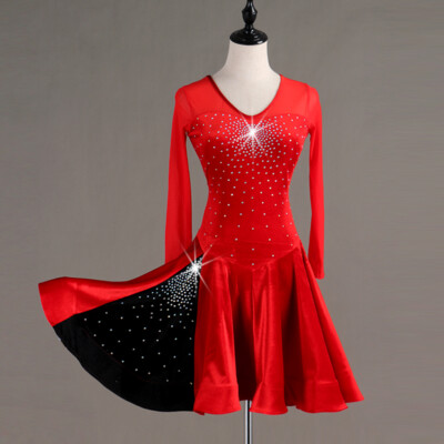 • LIUHUO Damen Latin Dance Kleid Schwarz - V-Ausschnitt Wettbewerbskleid Mit Diamantverzierung