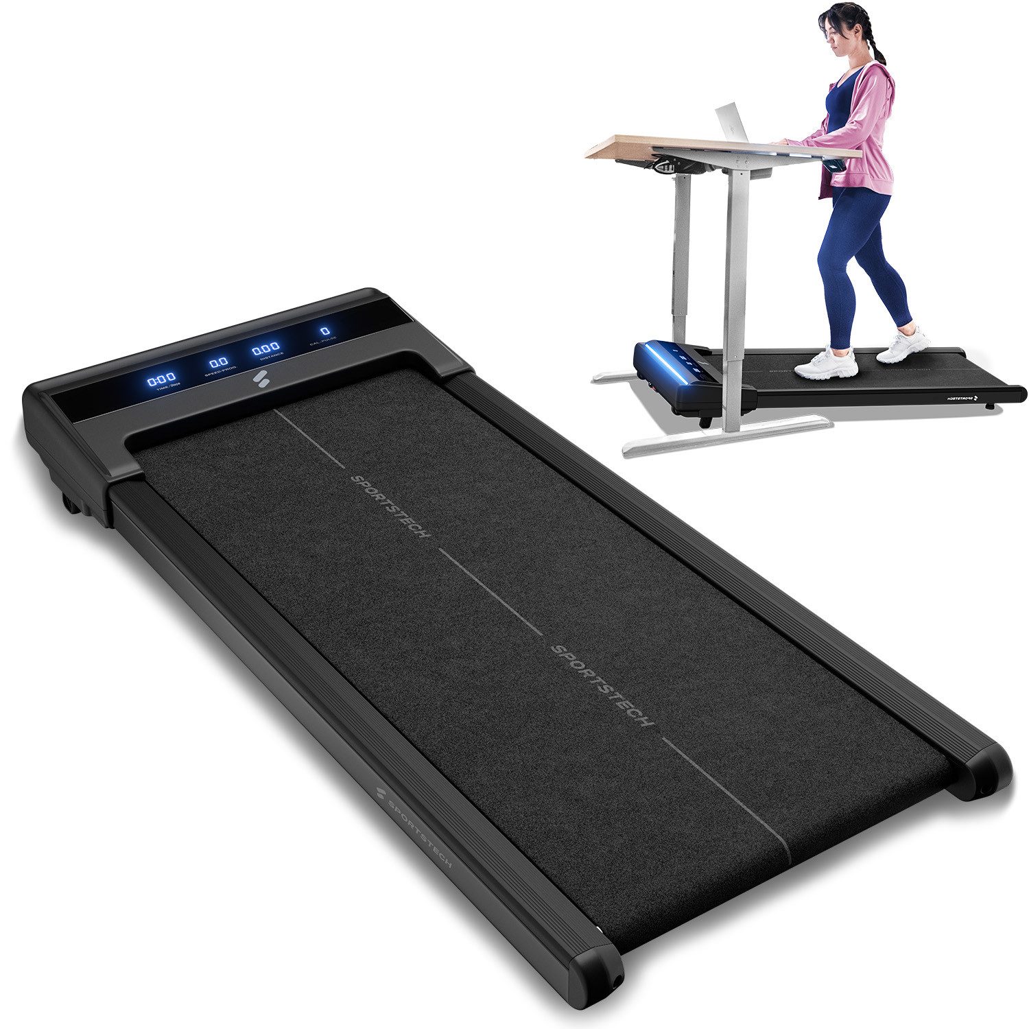 Bewegung im Homeoffice war noch nie so einfach! Dieses kompakte Laufband mit verstellbarer Neigung passt perfekt unter jeden Schreibtisch. Geschwindigkeit von 1-8 km/h einstellbar, ideal für Walking während der Arbeit. Mit 2,5PS Motor und 5-lagiger Stoßdämpfung schonend für Gelenke. LCD-Display zeigt Zeit, Geschwindigkeit, Distanz und Kalorien. Leise im Betrieb - perfekt für Meetings oder Serie schauen. Mit Rollen einfach zu bewegen und platzsparend zu verstauen. Steigere deine Produktivität und Fitness gleichzeitig - walk and work!
