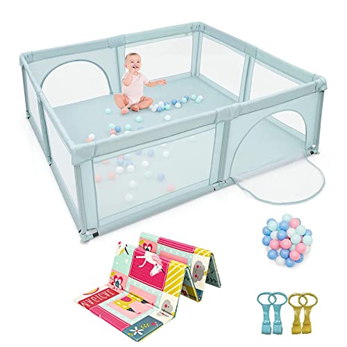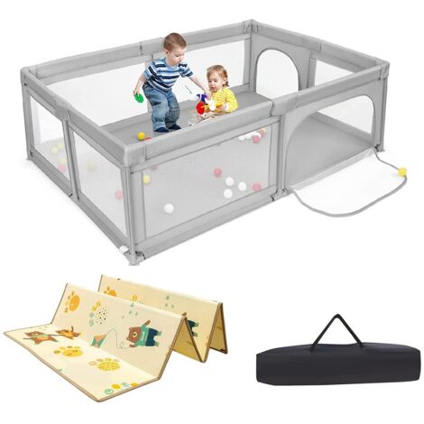 Du suchst einen sicheren Ort, wo dein Kleines spielen kann? Dieser Laufstall ist genau das Richtige! Mit 180 x 120 x 66 cm bietet er viel Platz zum Toben. Das Besondere: Er kommt mit 50 bunten Bällen - die machen nicht nur Spaß, sondern fördern auch die motorische Entwicklung deines Kindes. Vier Saugnäpfe am Boden sorgen für extra Stabilität, damit nichts verrutscht. Die Netzwände sind atmungsaktiv, damit dein Baby immer genug Luft bekommt, und du hast trotzdem alles im Blick. Die Reißverschlusstür macht das Rein- und Rausgehen super einfach. Alles ist aus ungiftigen Materialien gemacht, und die abgerundeten Ecken schützen vor Verletzungen. Einfach aufbauen - schon hat dein Kind seinen eigenen Spielbereich. Perfekt fürs Wohnzimmer, aber auch praktisch wenn ihr woanders zu Besuch seid. Dein Baby kann sicher spielen, und du hast mal kurz die Hände frei!