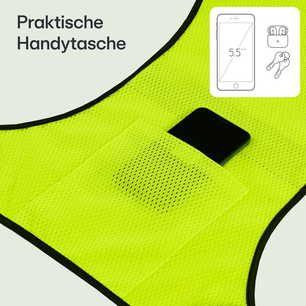Perfekter Begleiter für Läufer! Diese Laufweste wiegt nur 200g - du spürst sie kaum! Wasserdichte Handytasche schützt dein Smartbook vor Schweiß und Regen. Reflektierende Elemente sorgen für Sichtbarkeit bei Dunkelheit - sicher auch bei Nachtläufen. Verstellbare Gurte für perfekte Passform bei Damen und Herren. Mehrere Taschen für Schlüssel, Geld, Energiegels - alles griffbereit! Atmungsaktives Material leitet Feuchtigkeit weg - kein unangenehmes Schwitzen. Sitzt stabil ohne zu verrutschen - auch bei Sprints oder Trailrunning. Perfekt für Jogging, Wandern, Radfahren oder Stadtbummel. Maße: 25x20x3cm - kompakt aber geräumig. In Schwarz erhältlich - dezent und stylisch. Einfach anziehen und loslaufen - kein lästiges Festhalten des Handys mehr! Auch für Reisen super praktisch - wichtige Dinge immer sicher bei dir. Macht jedes Training komfortabler und organisierter. Einfach in der Maschine waschbar - immer frisch und sauber. Dein neuer Lieblingsbegleiter für alle Sportaktivitäten!