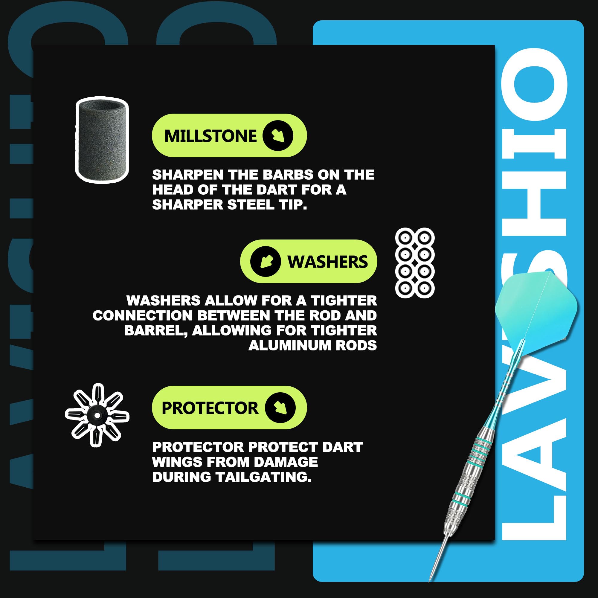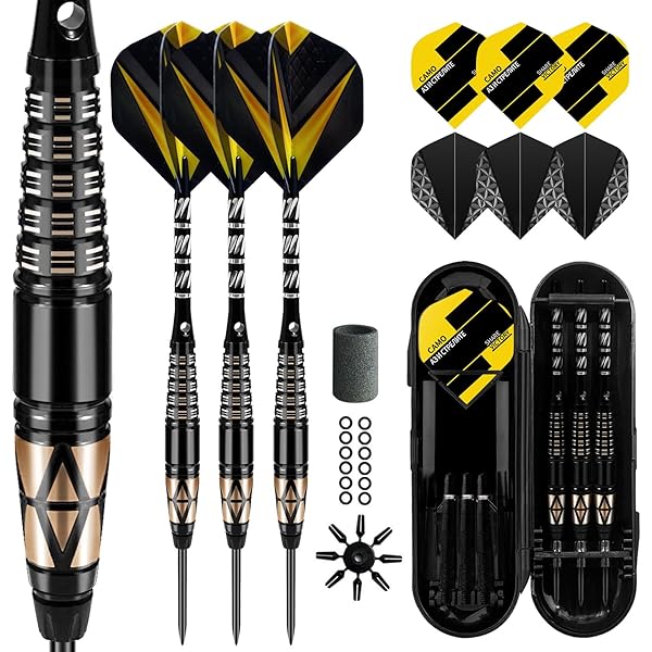 Bist du bereit für die nächste Dart-Partie? Das Lavishio Professional Dart Set mit Stahlspitzen ist genau das Richtige! Die 22g schweren Darts sind match-gewichtet für konsistente Würfe. Die aluminium Schäfte mit Rubber O-Rings verhindern das Lockern während des Spiels. Im Set enthalten: 3 Darts, Schäfte, O-Rings und einen Dart-Sharpener. Die texturierten Griffe geben dir perfekten Halt. Ob für zu Hause, die Kneipe oder den Verein - diese Darts machen überall eine gute Figur! Für Anfänger und Profis gleichermaßen geeignet. Mit den präzisen Stahlspitzen triffst du sicher die gewünschte Feld. Zeit, deine Dart-Skills aufs nächste Level zu bringen!