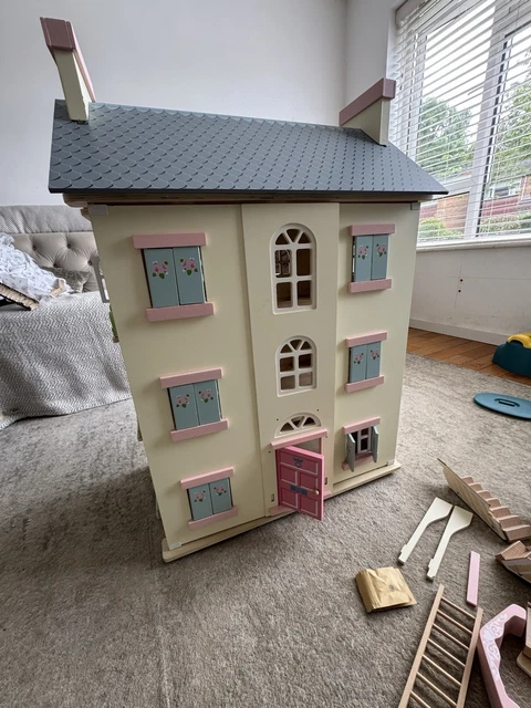 Wow, dieses Puppenhaus ist einfach der Hammer! Das Cherry Tree Hall von Le Toy Van ist mit stolzen 92 cm Höhe das größte Puppenhaus der Serie. Mit seinen 4 richtigen Stockwerken und dem süßen Blumen-Design wird's zum absoluten Lieblingsspielzeug für deine Kleinen. Und das Beste: Das Haus ist mega stabil aus Holz gemacht und komplett mit ungiftigen Farben bemalt - also total sicher für Kinderhände. Dein Kind kann hier stundenlang seine eigenen Geschichten erfinden, mit Puppen durch die Zimmer laufen lassen und dabei ganz nebenbei seine Fantasie und Koordination trainieren. Die vielen Details sind einfach niedlich: Funktionierende Fensterläden, ein richtiger Kamin und sogar Treppen mit Geländer! Puppen und Möbel sind zwar separat erhältlich, aber dafür gibt's ne riesige Auswahl an Zubehör. Perfekt für Rollenspiele mit Geschwistern oder Freunden - so macht soziales Lernen richtig Spaß! Übrigens: Dieses Traumhaus hat sogar schon den Made For Mums Toy Award in Gold gewonnen. Wenn du also deinem Kind ein besonderes Spielerlebnis schenken willst, bist du hier goldrichtig!