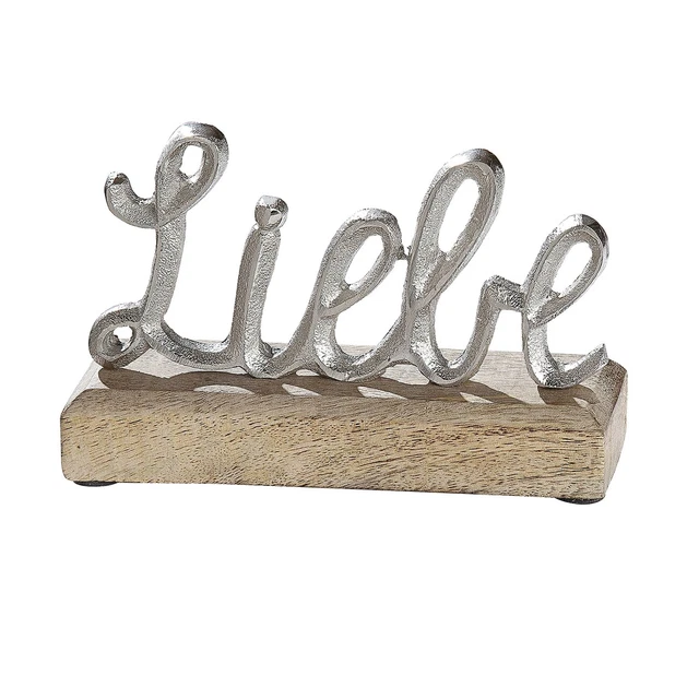 Tägliche Inspiration für dein Zuhause! Dieser schöne Schriftzug erinnert dich daran, was wirklich wichtig ist im Leben. Aus edler Kombination von Aluminium und Mangoholz.