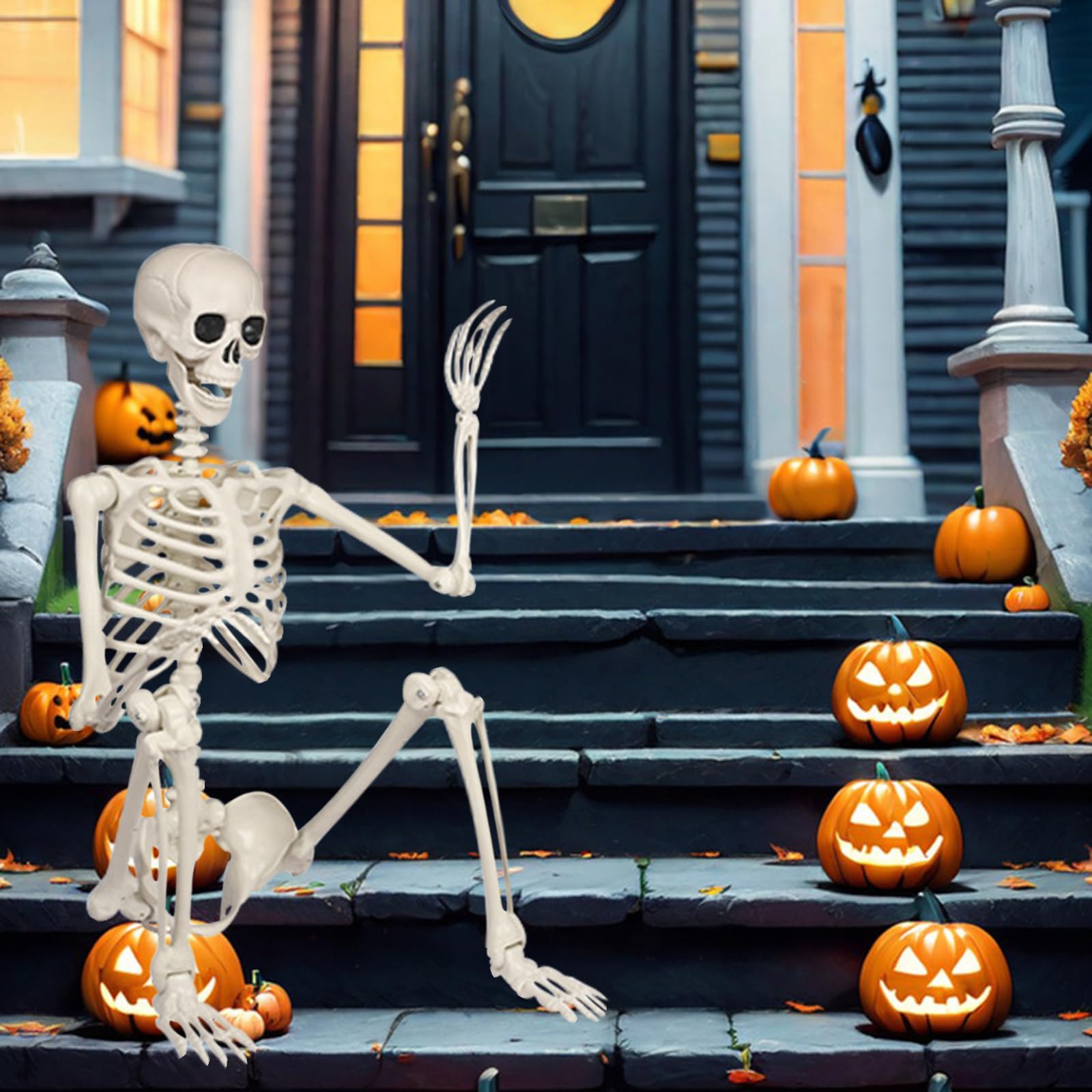Boah, dieses Halloween-Skelett ist ja mal richtig gruselig! Mit 93cm Größe wirkt es total lebensecht und hat bewegliche Gelenke - du kannst es in alle möglichen Posen bringen. Ob sitzend auf nem Stuhl, hängend oder liegend - der Kreativität sind keine Grenzen gesetzt. Aus stabilem Kunststoff und leicht zu reinigen, hält es Jahre lang. Der Kopf wird einfach reingeschraubt, Montage in wen Minuten erledigt. Perfekt für Spukhäuser, Garten-Deko, Friedhofs-Szenen oder die Halloween-Party drinnen. Die realistischen Knochen-Details sind richtig gut gemacht - da kriegen deine Gäste echt Gänsehaut! Einfach aufstellen und die Grusel-Atmosphäre genießen.
