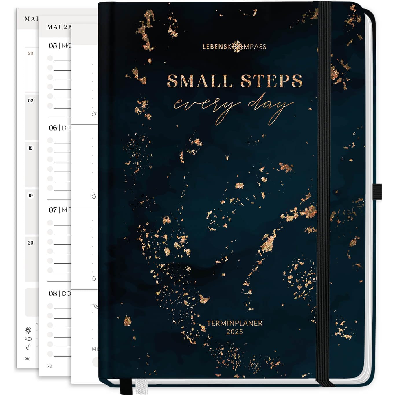 Endlich mehr Struktur im Alltag! Der Lebenskompass Kalender 2025 ist dein perfekter Begleiter für ein organisiertes Jahr. Mit dem kompakten A5-Format passt er super in jede Tasche und ist ideal für unterwegs. Das edle Hardcover mit Goldprägung sieht nicht nur toll aus, sondern ist auch mega stabil. Besonders praktisch: Die Spiralbindung lässt sich komplett flach aufschlagen - so macht Planen richtig Spaß! Der Wochenplaner im Punktraster-Design gibt dir maximale Freiheit für deine Notizen und To-dos. Dazu kommen achtsame Impulse und Selbstfürsorge-Tipps, die dir helfen, entspannt durchs Jahr zu kommen. Mit Monatsübersichten, Gummiband zum Schließen und hochwertigem FSC-zertifiziertem Papier ist dieser Kalender ein echter Allrounder für alle, die mehr Ordnung und Achtsamkeit in ihren Alltag bringen wollen. Perfekt für Beruf, Studium oder einfach nur für dich selbst!