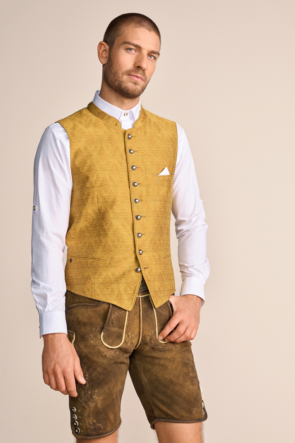 Boah, diese Trachtenweste ist einfach der Hammer für jedes Fest! Aus edlem Samt und Kunstleder gefertigt - sieht aus wie echt, ist aber viel pflegeleichter. Der Stehkragen gibt dir diesen typischen Trachten-Look, den jeder auf dem Oktoberfest liebt! Slim Fit sorgt für eine tolle Silhouette - du siehst einfach schlanker und stylischer aus. Perfekt nicht nur fürs Oktoberfest, sondern auch für Hochzeiten, Western-Partys oder einfach wenn du mal was Besonderes anziehen willst. Die Verarbeitung ist top und das Material fühlt sich super angenehm auf der Haut an. Egal ob mit Hemd darunter oder einfach so - mit dieser Weste machst du immer eine gute Figur! Und das Beste: Sie ist vielseitig kombinierbar! Zu Lederhosen natürlich, aber auch zu ner guten Jeans sieht sie mega aus. Einfach anziehen und der Star der Party sein! Vergiss nicht vorher die Größentabelle zu checken, damit sie auch perfekt sitzt!