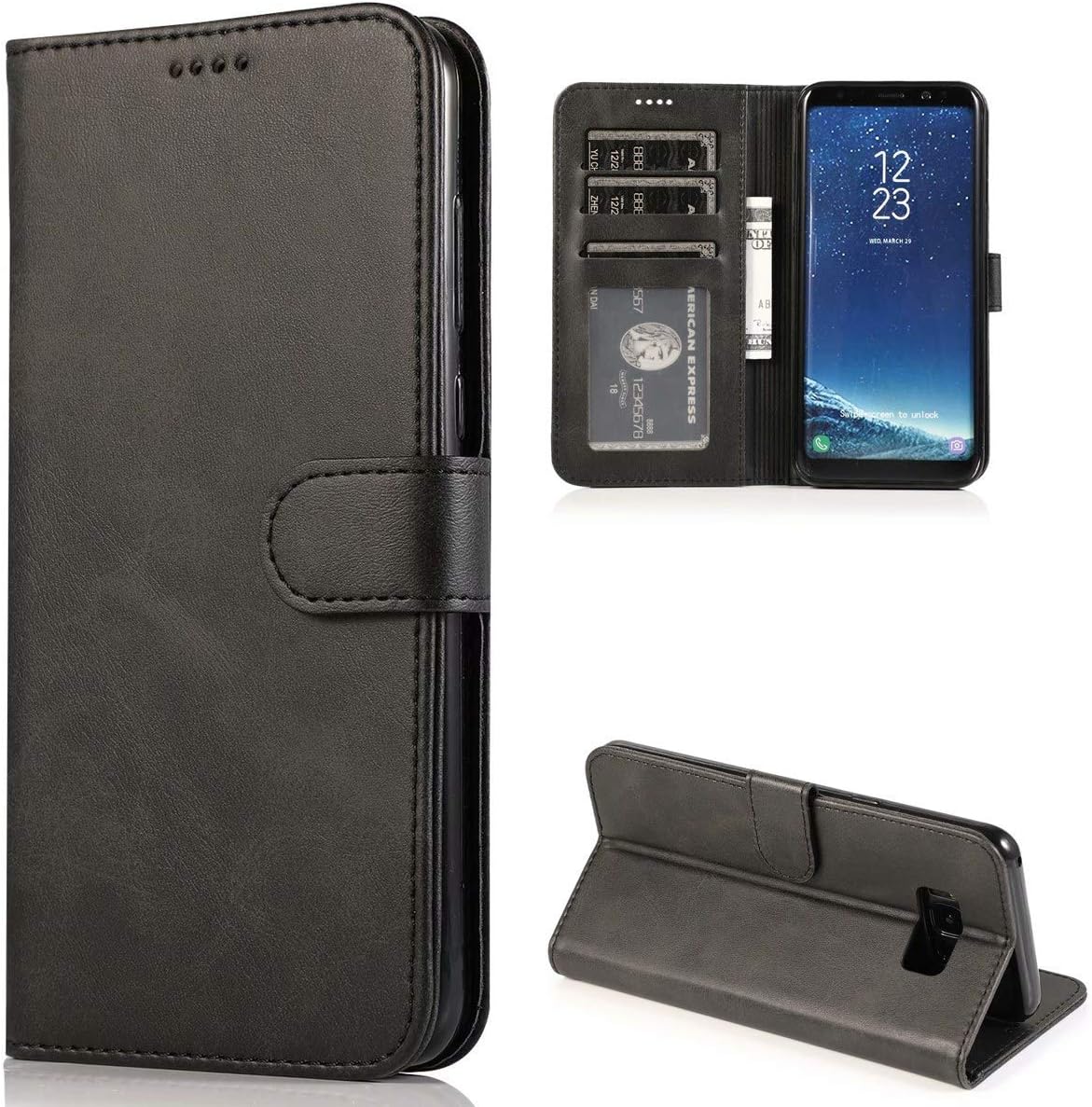 Hey, dein Galaxy S8 verdient doch den besten Schutz! Diese Lederschutzhülle aus hochwertigem PU-Leder sieht nicht nur edel aus, sondern schützt dein Phone auch vor Kratzern und Stößen. Das TPU-Innenfange sorgt für zusätzlichen Stoßschutz. Praktisch ist der integrierte Kartenschlitz - da passt deine Kreditkarte oder etwas Bargeld rein. Und wenn du Videos schauen willst, klappst du einfach die Hülle um und schon hast du einen stabilen Stand. Der Magnetverschluss hält sicher zu, aber alle Anschlüsse und Tasten bleiben trotzdem gut erreichbar. Im Lieferumfang ist sogar noch ein Eingabestift und ein Bling-Staubstecker dabei. Sieht aus wie ne teure Designerhülle, kostet aber nur einen Bruchteil!
