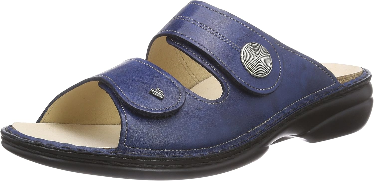 Oh ja, diese Pantoletten sind reines Wohlgefühl für die Füße! Von Finn Comfort mit anatomischem Fußbett für optimalen Komfort. Aus weichem Rindleder das sich perfekt anpasst. Die zwei Klettverschluss-Riemen geben perfekten Halt und sind verstellbar. Ideal für normale bis kräftigere Füße - auch mit Einlagen tragbar. Die flexible PU-Sohle dämpft jeden Schritt und unterstützt das gesunde Abrollen. Perfekt für den Sommer, Urlaub oder einfach für zu Hause. Einfach anziehen und sofort bequem unterwegs! Die Qualität spürt man sofort - das Leder ist super weich und scheuert nicht. Damit machst du deinen Füßen was Gutes!