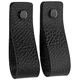 Verwandle langweilige Möbel in stylische Hingucker! Diese handgefertigten Ledergriffe aus 100% Vollnarbenleder verleihen deinen Schränken und Kommoden sofort einen trendy Industrial-/Vintage-Look. Im Set bekommst du 2 Griffe à 16,5cm Länge plus Schrauben in drei Farben (schwarz, silber, gold) - da findest du garantiert die passende Kombination für deine Möbel. Das Naturleder hat jedes Mal ein einzigartiges Muster, sodass jeder Griff ein Unikat ist. Einfach montieren - die Schraubenlöcher haben 5mm Durchmesser. Ob für IKEA-Möbel, selbstgebaute Schränke oder alte Möbel zum Aufhübschen - mit diesen Ledergriffen machst du aus Standard Designerkram!