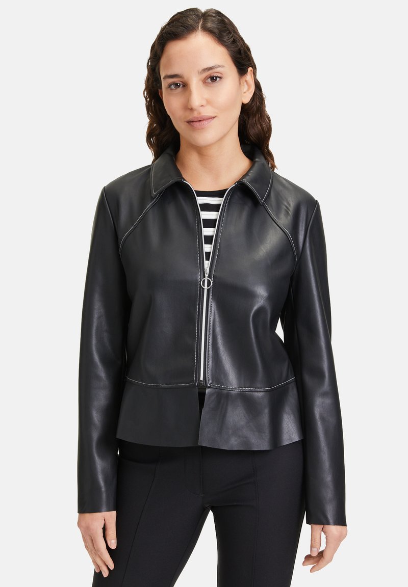 Damen Lederjacke Kurz - Slim Fit Kunstleder Mit Reißverschluss