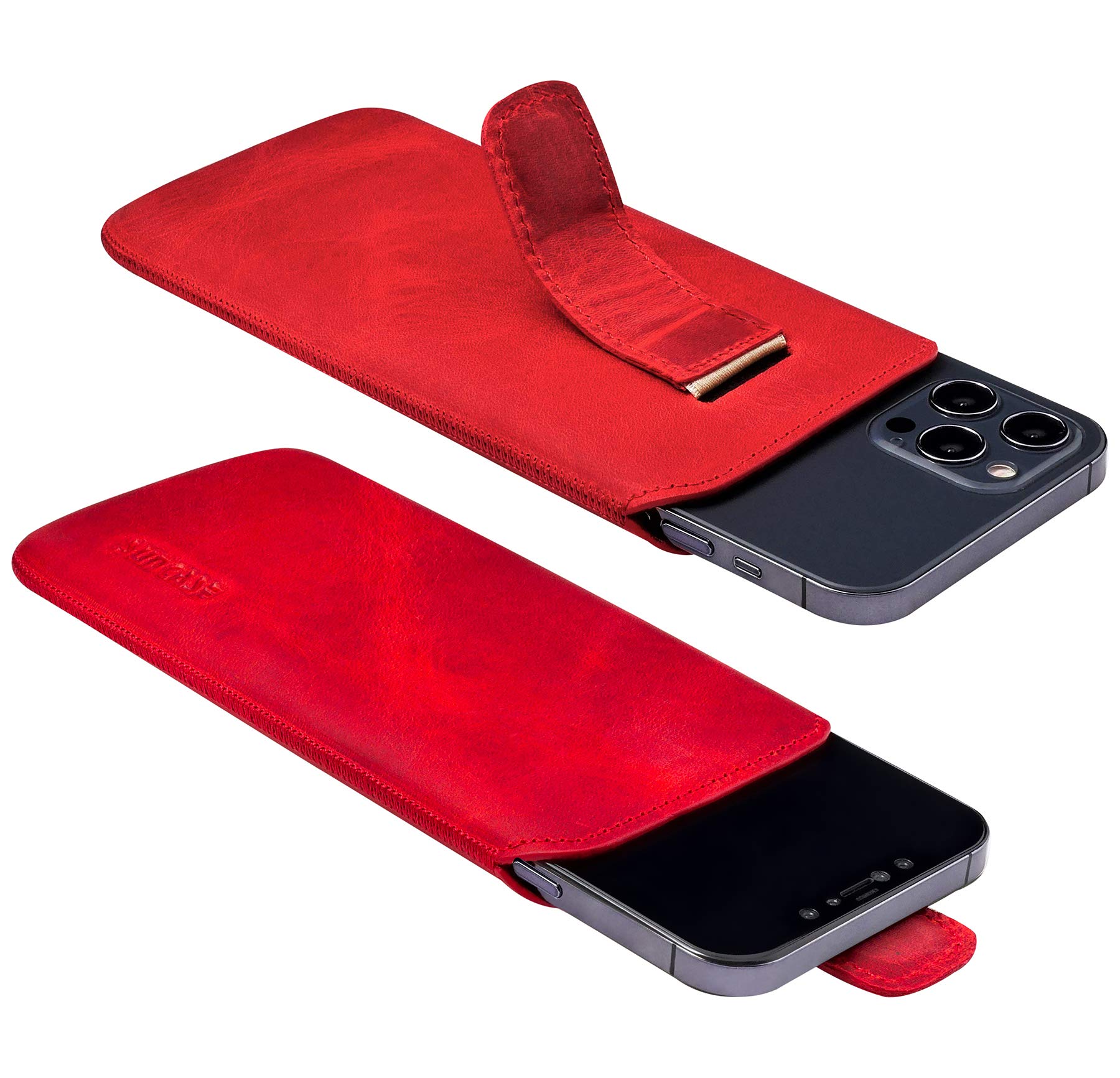 • Suncase Echt Ledertasche Für IPhone - Slim Edition Mit Magnetverschluss In Cognac
