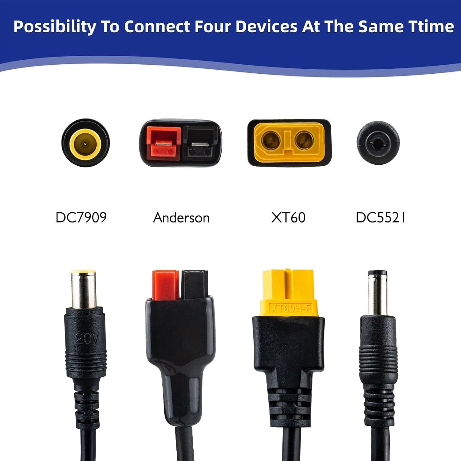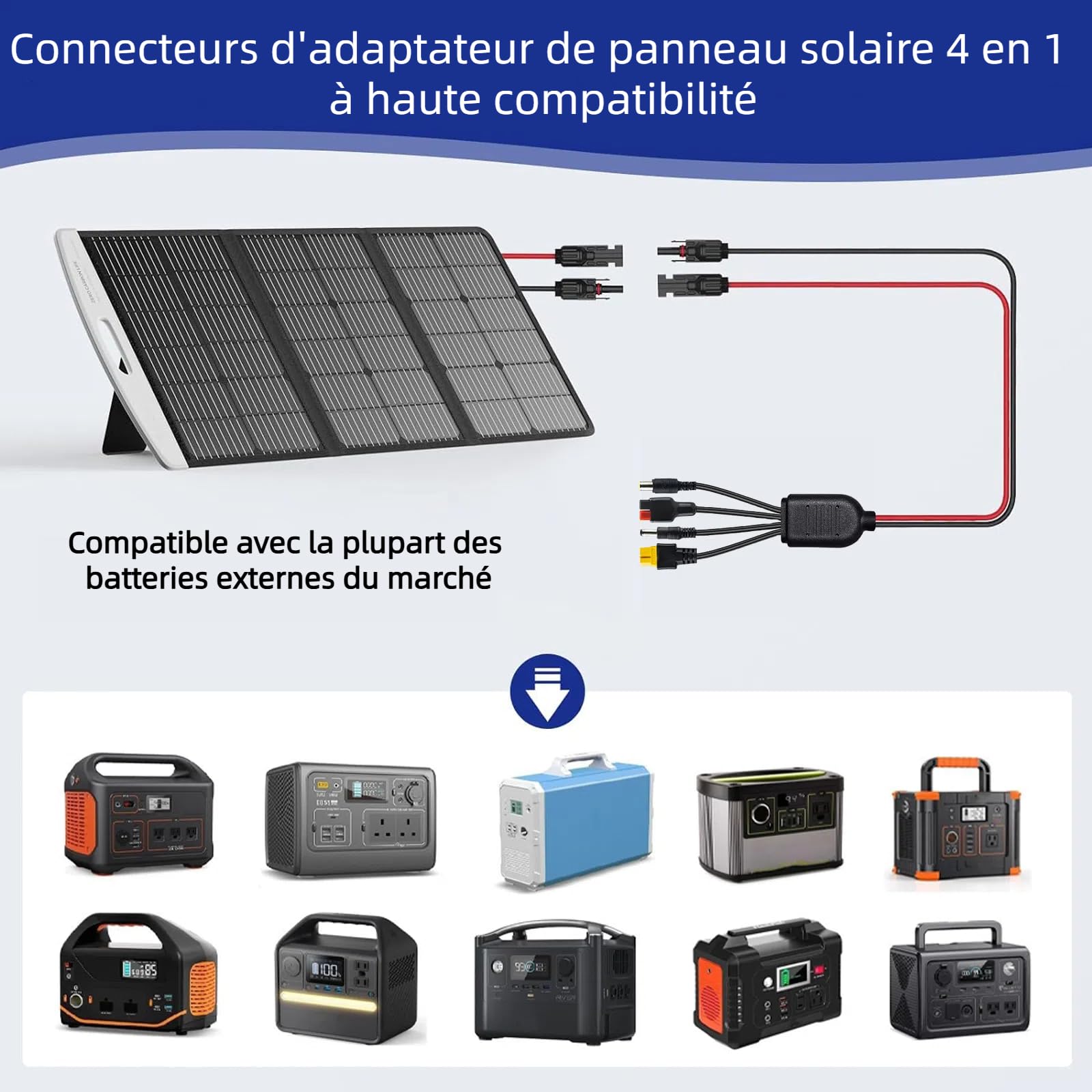 Das universelle Solarkabel für alle Fälle! Dieses praktische 4-in-1 Kabel verbindet deine Solarpanels mit so gut wie jedem Solargenerator auf dem Markt. Mit den Anschlüssen Anderson, XT60, DC7909 und DC5521 bist du bestens ausgerüstet. Das 1 Meter lange Kabel in 14/16 AWG Qualität sorgt für minimale Leistungsverluste. Besonders praktisch: Die Stecker lassen sich einfach per Druckknopf verbinden und trennen. Mit IP67 Schutz ist das Kabel absolut wetterfest und für den Outdoor-Einsatz geeignet. Ob für deine Powerstation im Campingurlaub, die Gartenbeleuchtung oder Notstromversorgung - dieses Adapterkabel macht dich flexibel. Temperaturbeständig von -20°C bis +120°C, also für fast jedes Klima geeignet. Einfach plug and play!