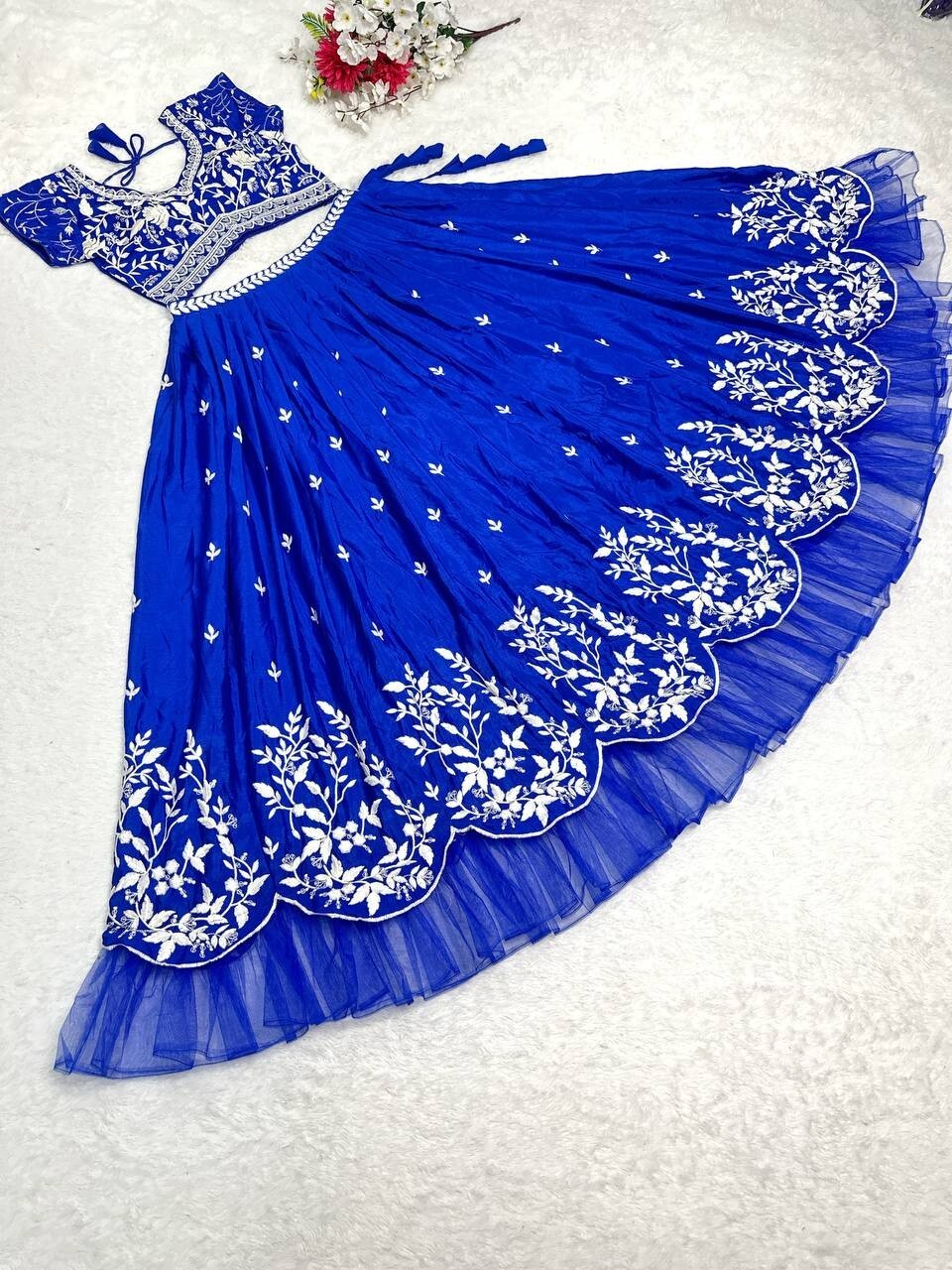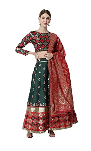 Tauche ein in die Welt der indischen Eleganz mit diesem wunderschönen Lehenga Choli! Perfekt für Hochzeiten, Festivals oder besondere Anlässe, wo du im Rampenlicht stehen willst. Das komplette Set besteht aus einer kunstvoll verzierten Bluse (Choli), einem weit schwingenden Rock (Lehenga) und einem bezaubernden Dupatta-Tuch - alles vollständig genäht und ready-to-wear.