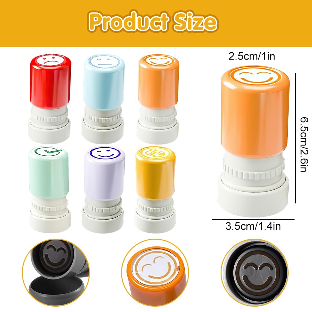 So macht Lernen Spaß! 9 selbstfärbende Lehrer-Stempel in bunten Cartoon-Designs motivieren deine Schüler richtig toll. Aus robustem ABS-Kunststoff mit langlebiger, ungiftiger Tinte - hält über 1000 Stempelvorgänge durch. Einfach Kappe abnehmen und draufdrücken - keine zusätzliche Tinte nötig! Perfekt für Hausaufgaben, Klassenarbeiten oder als Belohnungssystem. Die niedlichen Motive und aufmunternden Sprüche machen Kindern richtig Freude am Lernen. Kompakt und leicht - ideal für unterwegs oder im Klassenraum. Auch für Eltern super geeignet, um die Hausaufgaben der Kinder aufzupeppen. Einfach stempeln und strahlende Kinderaugen garantieren!