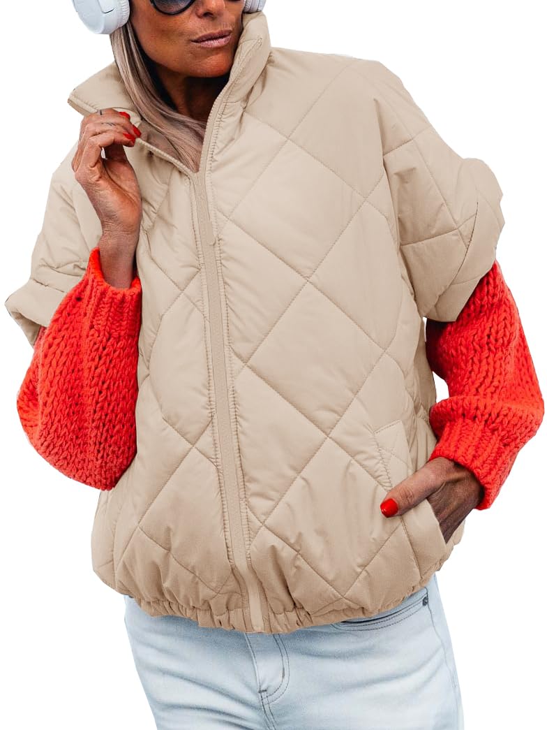 Hey, diese Steppweste ist ja mal was Anderes! Sie hat nämlich keine langen Ärmel, sondern coole, kurze Fledermausärmel - das gibt ihr eine total lässige Silhouette. Perfekt für die Übergangszeit, wenn's morgens noch frisch ist, aber mittags schon warm wird. Die elegante Rautensteppung sieht nicht nur gut aus, sondern sorgt auch dafür, dass die leichte Wattierung gleichmäßig verteilt ist. Der hohe Stehkragen hält deinen Hals schön warm und sieht dabei noch stylisch aus. Einfach über ein Langarmshirt oder dünnen Pullover ziehen - schon hast du einen tollen Layering-Look hinbekommen! Gibt's in 9 verschiedenen Farben: von schickem Schwarz über trendiges Olive bis zu hübschem Rosa. Super bequem, nicht zu schwer und mit viel Bewegungsfreiheit. Egal ob für die Arbeit, Uni oder einfach so - mit dieser Weste bist du immer perfekt angezogen!