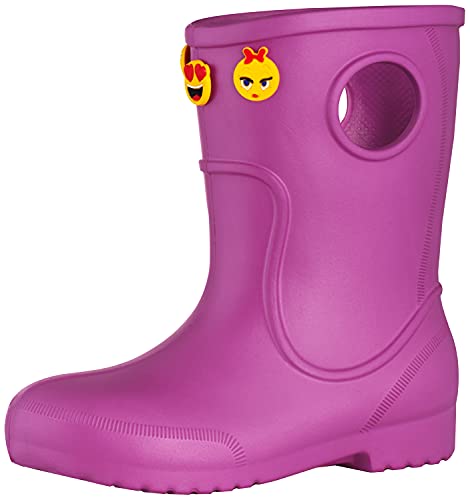 Suchst du die perfekten Gummistiefel für deine kleinen Abenteurer? Unsere bunten Cartoon-Stiefel machen auch bei miesestem Regenwetter Laune! Vollkommen wasserdicht halten sie kleine Füße trocken - egal ob in Pfützen, auf nassen Wiesen oder beim Spielen im Garten.\n\nDas Besondere: Die rutschfeste Sohle gibt auf nassen Untergründen super Halt. Deine Kinder können toben und spielen, ohne ständig auszurutschen. Und weil die Stiefel so leicht sind, merken sie kaum, dass sie überhaupt etwas an den Füßen haben.\n\nDer Tragekomfort ist erstklassig: Weiches Innenfutter, anatomisch geformte Fußbetten und eine bequeme Passform sorgen dafür, dass die Stiefel auch nach Stunden nicht drücken. Besonders praktisch sind Modelle mit Klettverschluss - die bekommen auch die Kleinsten schon alleine an und aus.\n\nDie Qualität überzeugt: Aus robustem, flexiblem Gummi gefertigt, halten diese Stiefel auch wildesten Spielaktionen stand. Doppelte Nähte und verstärkte Sohlen sorgen für lange Lebensdauer. Und die fröhlichen Cartoon-Motive finden Kinder einfach toll!\n\nEgal ob für den Kindergarten, die Schule oder den nächsten Familienausflug - mit diesen Gummistiefeln ist dein Kind für jedes Wetter gewappnet. Und das Beste: Es gibt sie in Unisex-Designs, also für Jungen und Mädchen gleichermaßen geeignet. Einfach anziehen und los geht's Regen-Spaß!