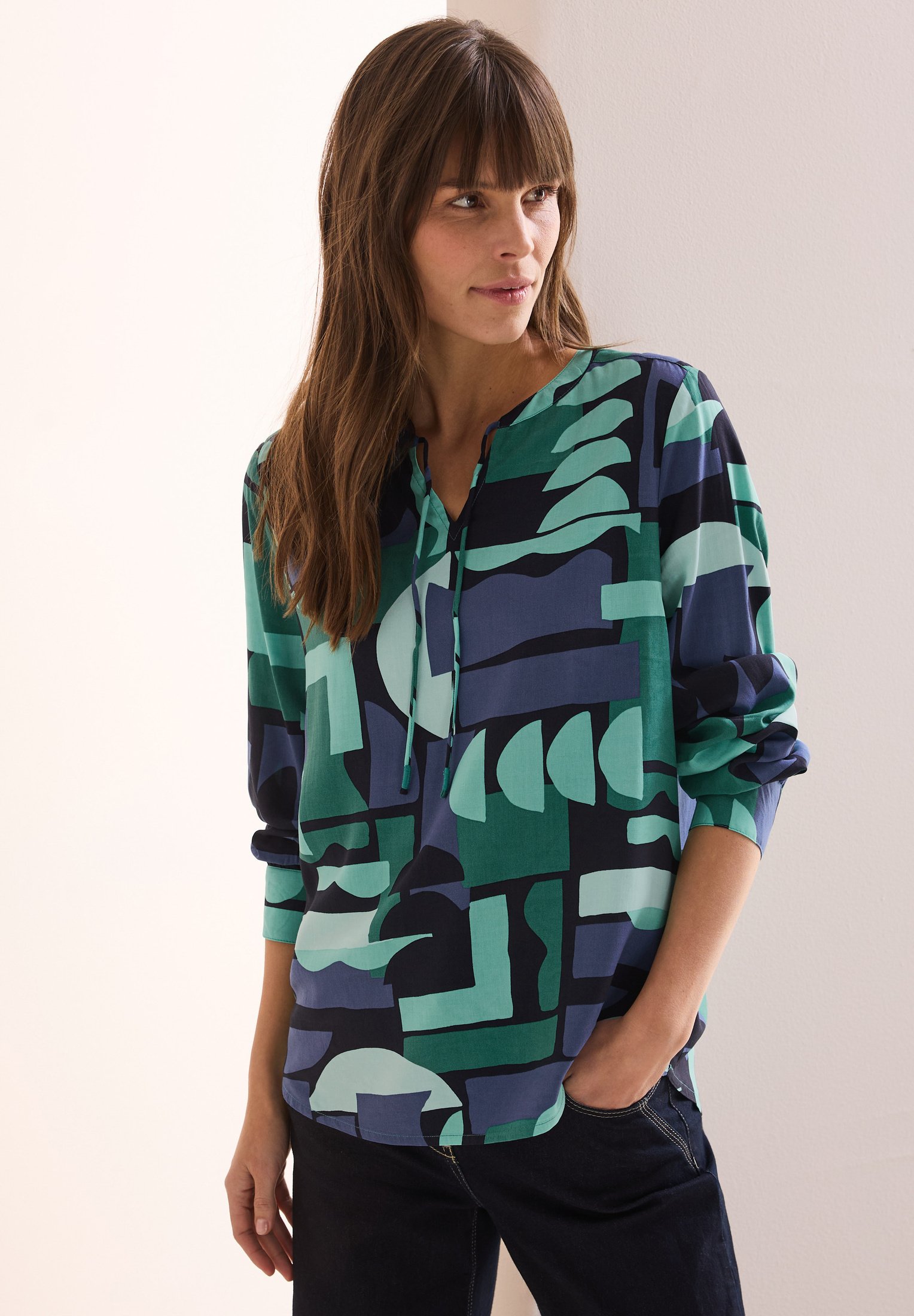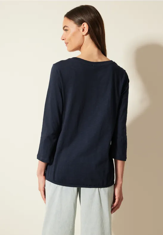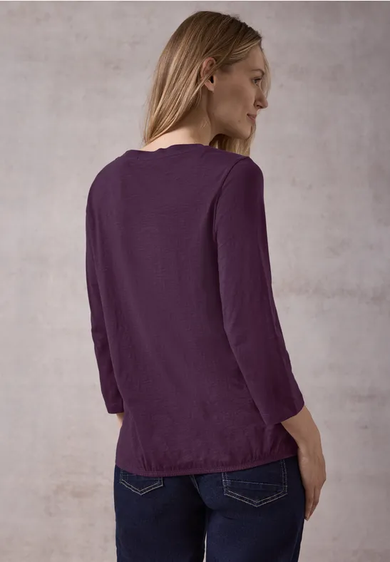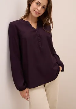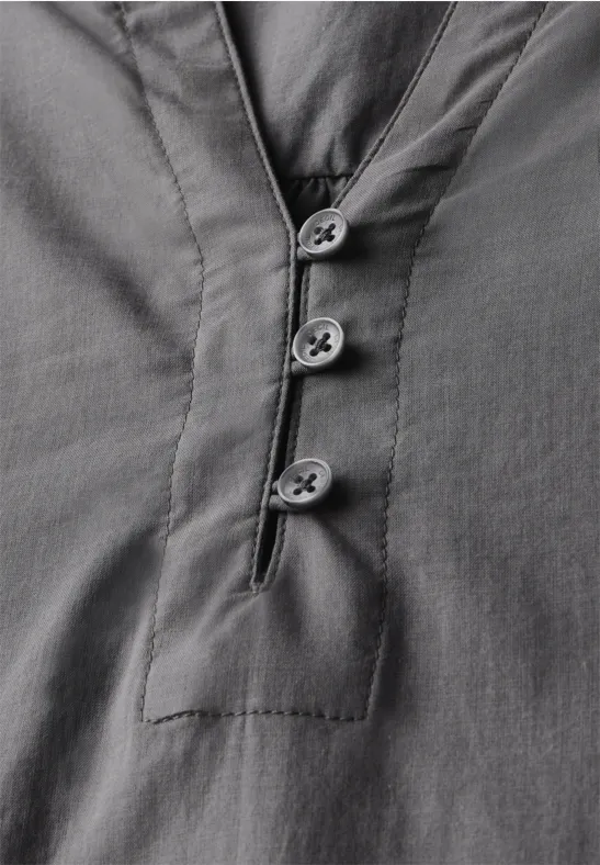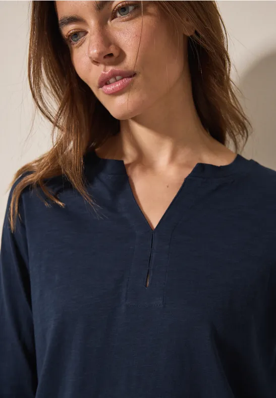 Der geschlitzte Ausschnitt mit dekorativer Knopfleiste gibt der Tunika einen stylischen Look. Die 3/4-Ärmel mit elastischen Bündchen sorgen für perfekten Sitz und der gerundete Saum rundet das Gesamtbild ab.