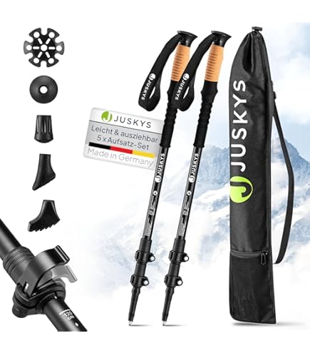 Diese Trekkingstöcke sind der perfekte Begleiter für alle Outdoor-Aktivitäten! Super leicht mit nur 290 Gramm Gewicht, aber dennoch extrem stabil. Teleskopierbar von 27 cm auf 64 cm - kompakt für den Transport, lang genug fürs Wandern. In schwarz gehalten, mit Anti-Rutsch-Griffen für perfekten Halt. Die rutschfesten Spitzen geben Sicherheit auch in schwierigem Gelände. Perfekt für Wanderungen, Skitouren oder tägliche Spaziergänge. Das blitzschnelle Ausziehsystem macht die Handhabung super einfach. Robustes Material hält auch intensiver Nutzung stand. Ein Muss für alle Outdoor-Enthusiasten die Wert auf Sicherheit und Komfort legen!