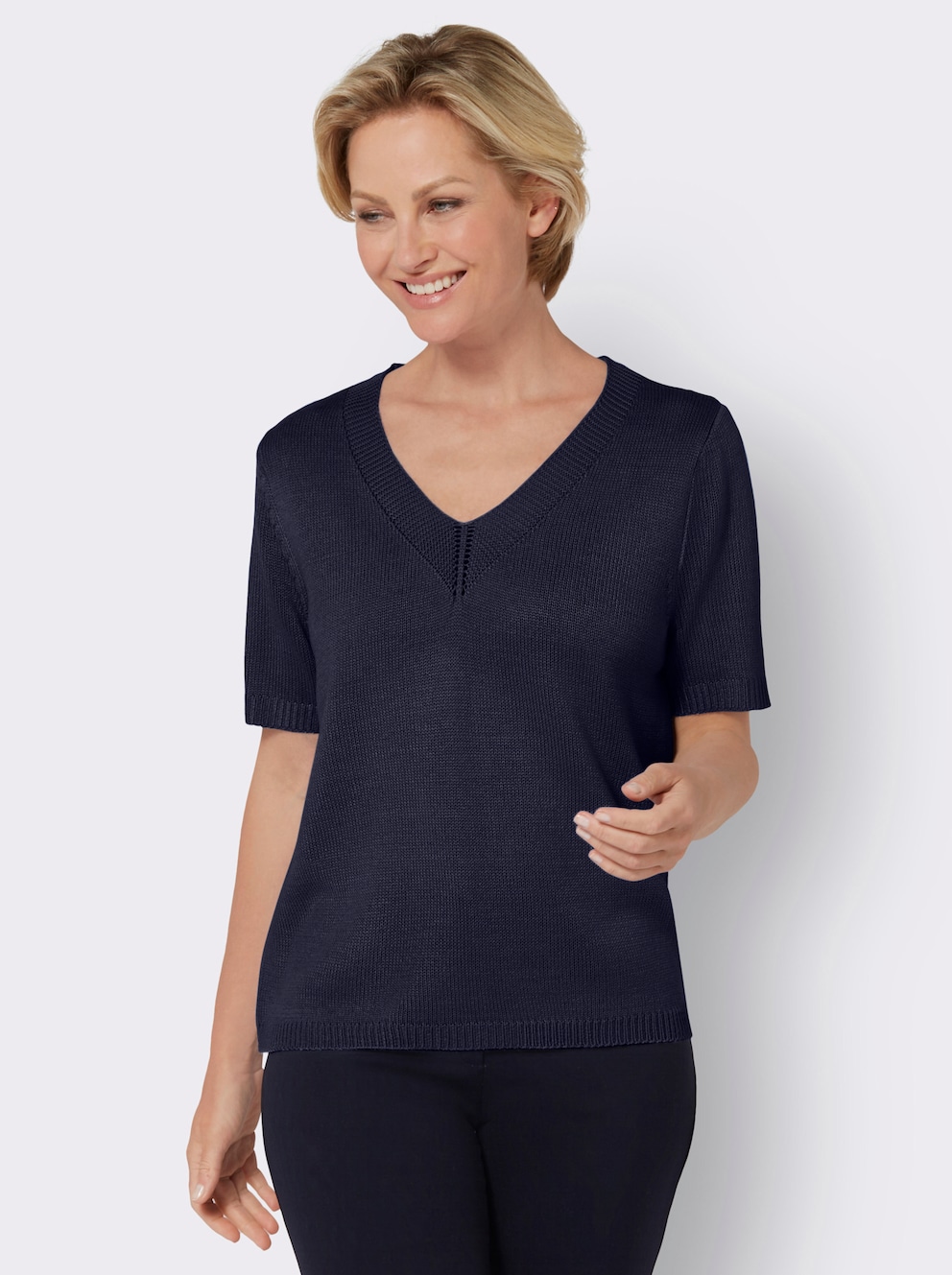 So leicht und elegant! Dieser Sommer-Pullover für Damen ist perfekt für warme Tage. Aus feinem Strick mit V-Ausschnitt und Kurzärmeln - nicht zu warm, nicht zu kühl. Super bequem und dehnbar, passt sich jeder Figur an. In vielen Farben erhältlich - von klassischem Schwarz bis zu frischen Pastelltönen. Perfekt für Frühling und Sommer, ob lässig oder etwas schicker. Einfach zu kombinieren mit Jeans, Röcken oder Shorts. Maschinenwaschbar und formbeständig. Ein Basic, das du immer wieder tragen wirst!