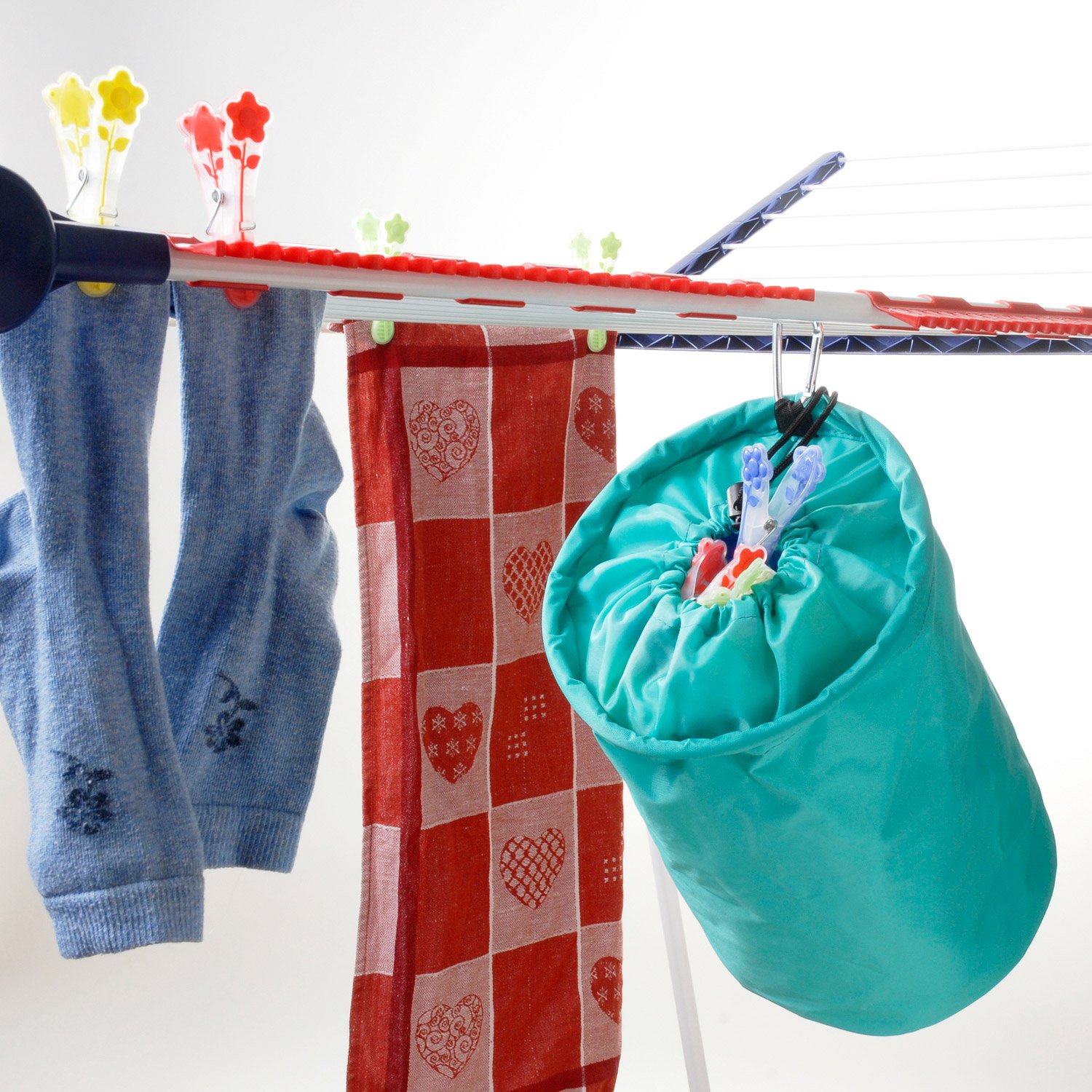 Schluss mit herumfliegenden Wäscheklammern! Dieser praktische Beutel aus robustem Leinen-Stoff bringt Ordnung in deine Wäscherei. Mit den Maßen 30x22 cm bietet er Platz für bis zu 50 Wäscheklammern. Der stabile Aufhängehaken aus Edelstahl macht es super einfach, ihn an der Wäscheleine oder im Schrank zu befestigen. Die U-förmige Öffnung sorgt dafür, dass du schnell an deine Klammern kommst, ohne dass sie herausfallen. Aber das Beste: Du kannst den Beutel nicht nur für Wäscheklammern nutzen, sondern auch als Organizer für Kosmetik, Socken oder andere Kleinigkeiten. Perfekt für Balkon, Bad oder Kleiderschrank - ein echter Alleskönner für mehr Ordnung im Haushalt!