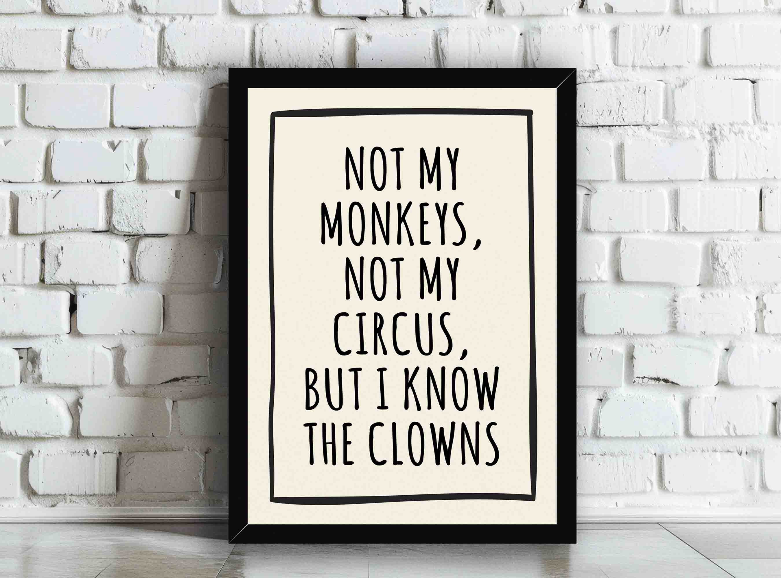 Dieses coole Leinwandbild mit dem Spruch 'Not My Monkeys, Not My Circus, But I Know The Clowns' bringt Humor und Stil in deine vier Wände! Gedruckt mit hochwertigen ökologischen Pigmenttinten auf wasserfester Leinwand für lebendige Farben und lange Haltbarkeit. Ohne Rahmen geliefert - du kannst es direkt aufhängen oder in deinen Lieblingsrahmen einsetzen. Perfekt für Wohnzimmer, Schlafzimmer, Küche, Büro oder Hotelzimmer. Das Design ist ein echter Eyecatcher und sorgt für Gesprächsstoff bei Gästen. Jedes Bild wird sorgfältig verpackt, damit es sicher bei dir ankommt. Wichtig: Vor dem Kauf die gewünschte Größe genau ausmessen! Ein ideales Geschenk für Freunde oder einfach für dich selbst - um deine Wände mit Persönlichkeit zu füllen.