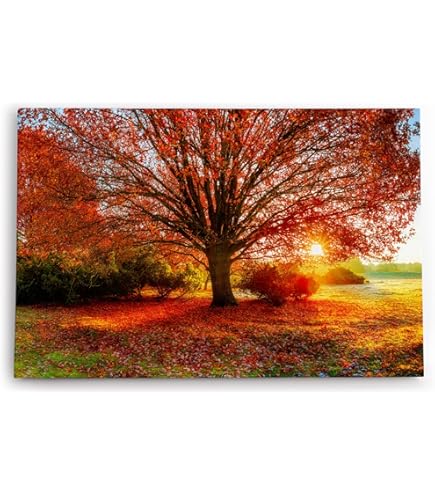 Verwandle deine Wände in eine herbstliche Idylle! Dieses wunderschöne Leinwandbild zeigt einen magischen Herbstpark mit goldenen Bäumen und bunten Blättern, die in warmen Sonnenstrahlen baden. Im Panorama-Format 120x40cm - ein echter Hingucker für jede Wand. Hergestellt in Deutschland auf echter Leinwand mit Holzrahmen. Mit ökologischen Tinten gedruckt für brillante Farben. Inklusive Aufhänger für einfache Montage. Perfekt für Wohnzimmer, Flur oder Büro. Bring den Zauber des goldenen Herbstes in dein Zuhause!