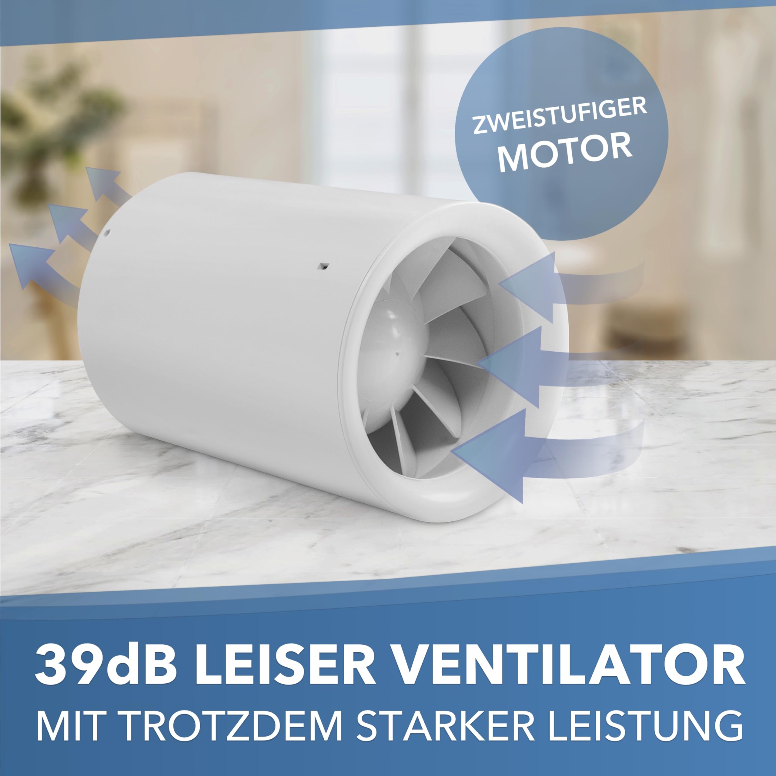 Frische Luft in Sekunden! Der Aprto Rohrventilator mit 150 mm Durchmesser sorgt mit satten 320 m³/h Luftleistung für perfekte Belüftung - und das bei nur 34 dB, also superleise! Aus hochwertigem ABS-Kunststoff gefertigt, ist er feuchtigkeitsresistent und langlebig. Die integrierte Rückflussklappe verhindert, dass kalte Luft oder Insekten zurückströmen. Einfach in Standard-160mm-Lüftungsschläuche einbauen - ob horizontal oder vertikal, an Wand oder Decke. Perfekt für stickige Badezimmer, dampfende Küchen, aber auch Gewächshäuser, Growzelte oder Garagen. Mit 1,1 Meter Kabel direkt einsatzbereit. Sag goodbye zu schlechter Luft und unangenehmen Gerüchen - dieser Ventilator schafft Abhilfe! Einfach installieren, anschalten und durchatmen. Deine Lösung für mehr Frische in jedem Raum!