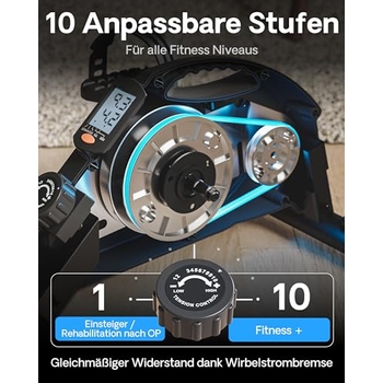 Bewegung war noch nie so einfach! Der STEHMEYER Pedaltrainer bringt Fitness direkt zu dir nach Hause - ob ins Büro, Wohnzimmer oder sogar ins Schlafzimmer. Dieser kompakte Mini-Heimtrainer ist super leise und gelenkschonend, perfekt für Senioren, Reha oder einfach für mehr Bewegung im Alltag. Trainiere sowohl Arme als auch Beine im Sitzen - ohne dein Zuhause verlassen zu müssen. Mit individuellem Widerstand, von sanft bis fordernd, passt sich deinem Fitnesslevel an. Das große LCD-Display zeigt dir Zeit, Distanz, Kalorien und Umdrehungen an - so bleibst du motiviert! Rutschfeste Basis bis 150 kg Belastung, schneller Aufbau ohne Werkzeug. Perfekt für Blutkreislauf, Muskelaufbau oder einfach zur Aktivierung. Ob als Geschenk für Eltern oder für dich selbst - dieser Pedaltrainer macht Bewegung zur täglichen Gewohnheit. Hol dir mehr Lebensqualität mit jedem Tritt!