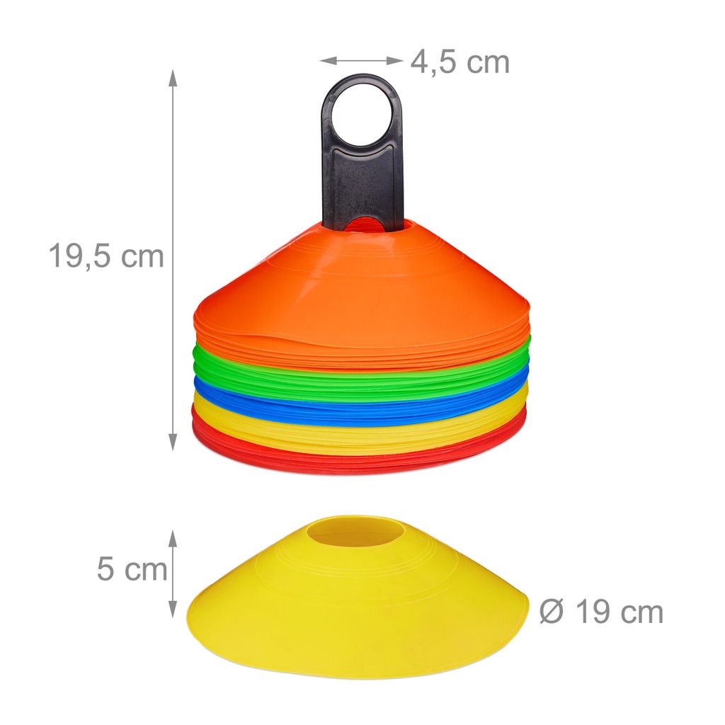 Ob für Sporttraining, Pferdesport oder zum Markieren von Spielfeldern - diese 10 Leitkegel von Relaxdays sind super praktisch! Aus bruchsicherem PE-Material und ideal für drinnen und draußen. Perfekt für Slalomläufe, Dribbel-Übungen oder als Hindernisse im Reitplatz. Die Kegel lassen sich platzsparend stapeln und werden im praktischen Schnürbeutel geliefert - easy zu transportieren und zu verstauen. Jeder Kegel wiegt nur etwa 60 Gramm, das gesamte Set ca. 0,6 kg. Perfekt für Vereine, Schulen oder den eigenen Garten. Einfach aufstellen und loslegen - so macht Training Spaß!