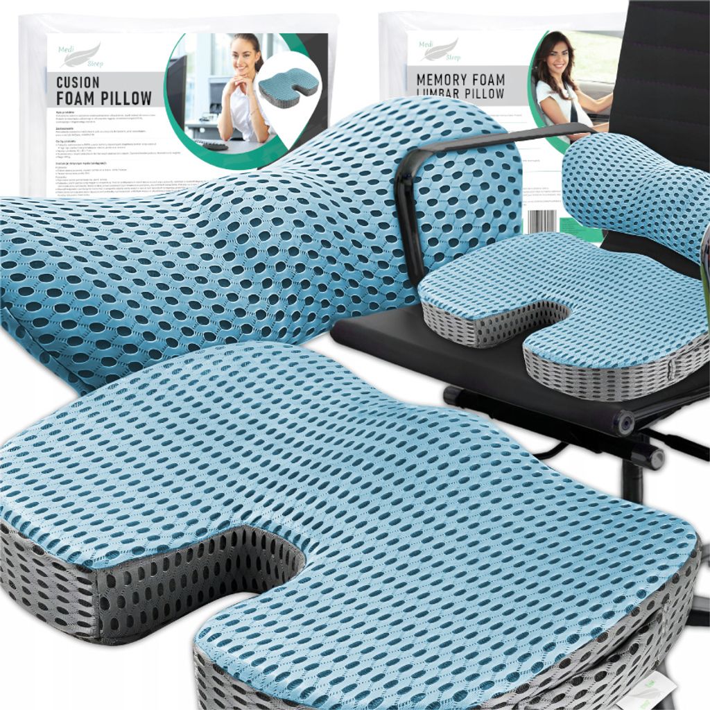 Dieses 2-in-1 Set aus Sitzkissen und Lendenkissen macht langes Sitzen endlich erträglich! Der Memory-Schaum passt sich perfekt deinem Körper an und entlastet Wirbelsäule, Steißbein und Ischiasnerven. Die cleveren W-Form des Sitzkissens sorgt für Luftzirkulation und beugt Hämorrhoiden-Beschwerden vor. Das Rückenkissen stützt deine Lendenwirbel und hilft, eine gesunde Haltung beizubehalten. Beide Kissen sind mit Reißverschluss verbunden - zusammen oder einzeln verwendbar. Der rutschfeste Boden und der atmungsaktive Bezug (maschinenwaschbar!) machen das Ganze noch praktischer. Ob im Büro, Auto, Rollstuhl oder Flugzeug - dein Rücken wird dir danken! Endlich ohne Schmerzen durch den Tag kommen - probier's aus!