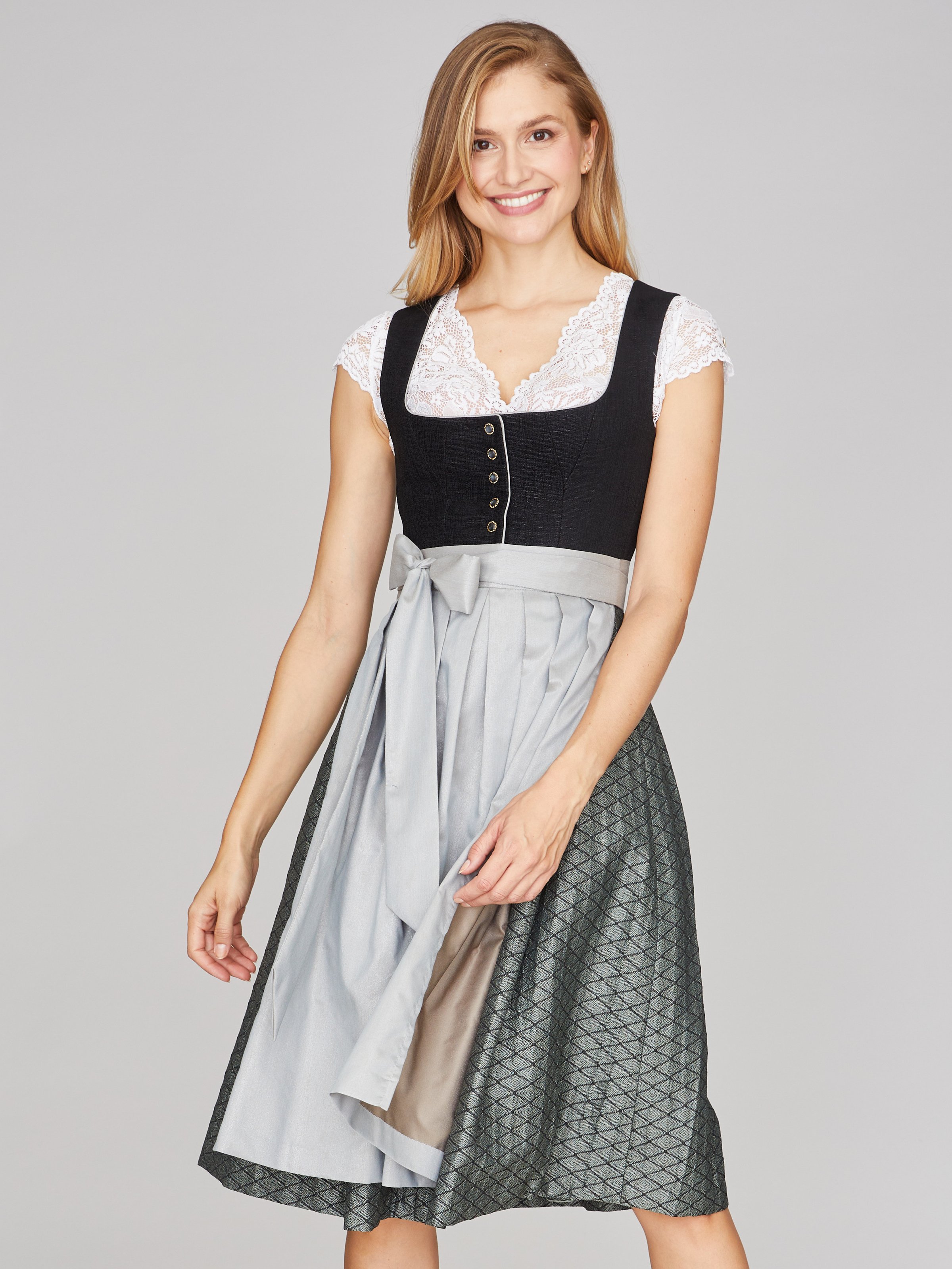 Tradition trifft Eleganz! Diese wunderschöne Lenka Dirndlbluse von DIRNDLSTERN vereint bayerischen Charme mit modernem Komfort. Der V-Ausschnitt mit hochgeschlossenem Kragen und die romantischen Spitzenverzierungen sorgen für einen klassisch-stilvollen Look. Die verspielten Puffärmel und das vertikale Streifenmuster betonen deine Figur perfekt. Hergestellt aus hochwertiger, atmungsaktiver Baumwolle, ist die Bluse angenehm zu tragen - selbst bei stundenlangen Wiesn-Besuchen. In zeitlosem Weiß passt sie zu jedem Dirndl oder Lederhose. Perfekt für Oktoberfest, Hochzeiten, Trachtenfeste oder auch mal lässig zur Jeans. Zur Schonung der feinen Spitzen wird Handwäsche empfohlen. Kommt in markeneigener Verpackung - ideal auch als Geschenk! Hol dir jetzt den perfekten Trachten-Look für unvergessliche Festmomente!